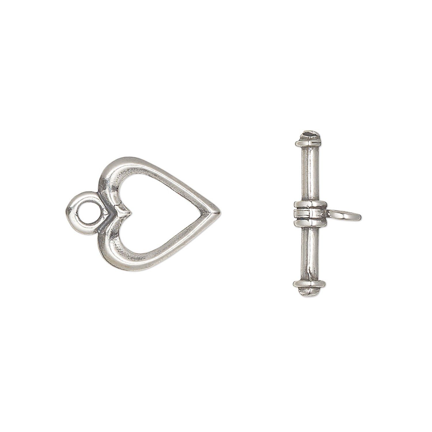 Clasp toggle 1pkg1 sterling silver, 13x11.5mm heart, antiqued JBB Findings 1-strand