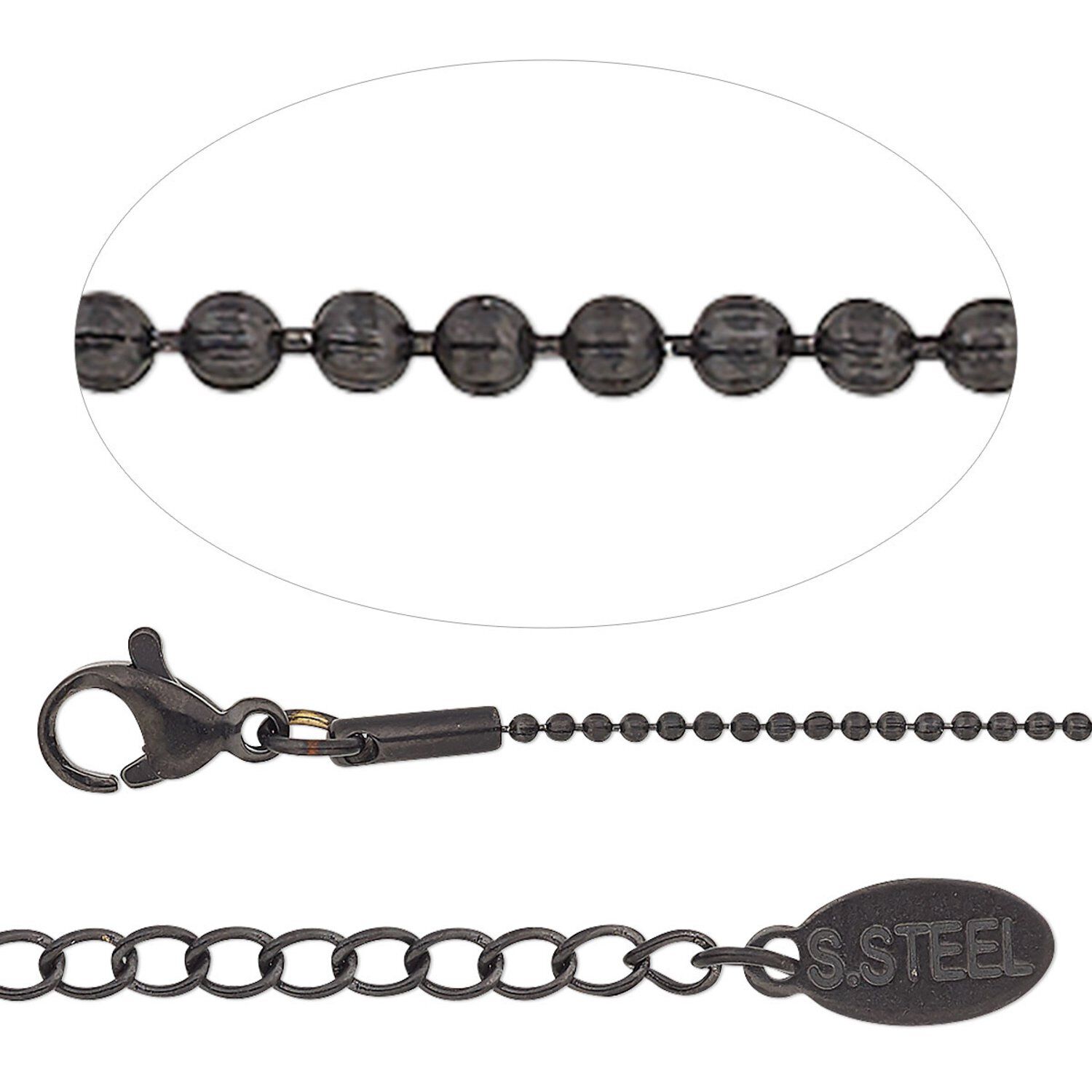 Chain, black-finished stainless steel, 1.2mm ball, 30 inches with 2-inch extender chain and lobster claw clasp. Sold individually.