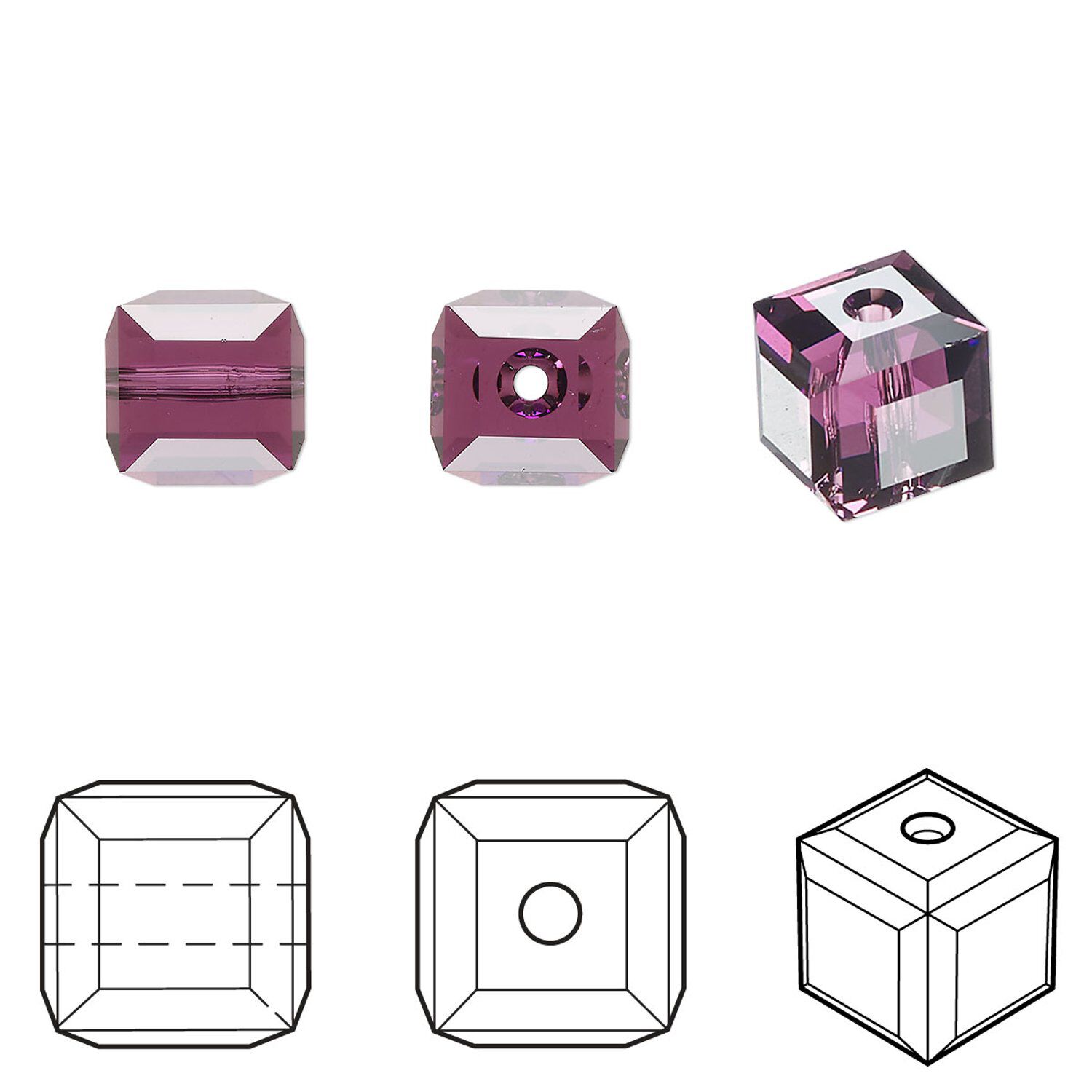 Bead 96pk amethyst, Swarovski® 8mm cube 5601