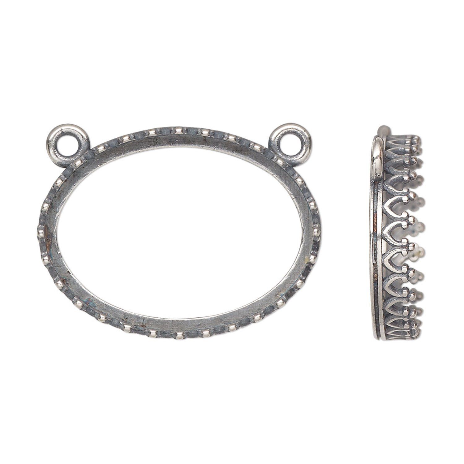 Connector, JBB Findings, antique silver-plated brass, 26.5x20mm oval with open back and decorative trim, 25x18mm oval bezel setting. Sold individually.