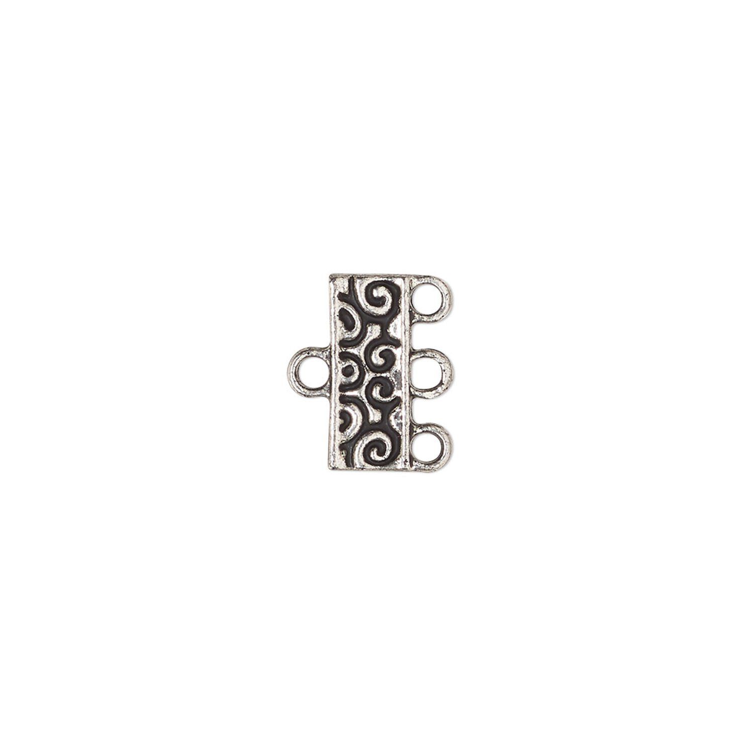 End bar, antique silver-finished "pewter" (zinc-based alloy), 12x5mm double-sided swirl design with 3 loops. Sold per pkg of 12.