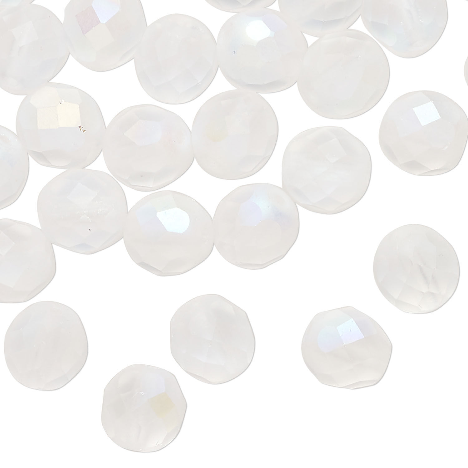 Bead 1pkg50, Czech fire-polished glass, matte opal AB, 8mm faceted round.