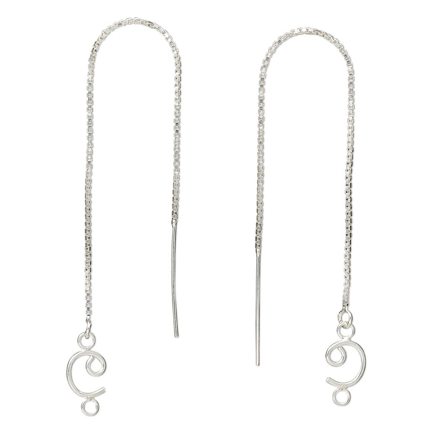 Ear thread 1pkg2 sterling silver, 4.5 inch box chain / swirl / closed loop, 1 pair