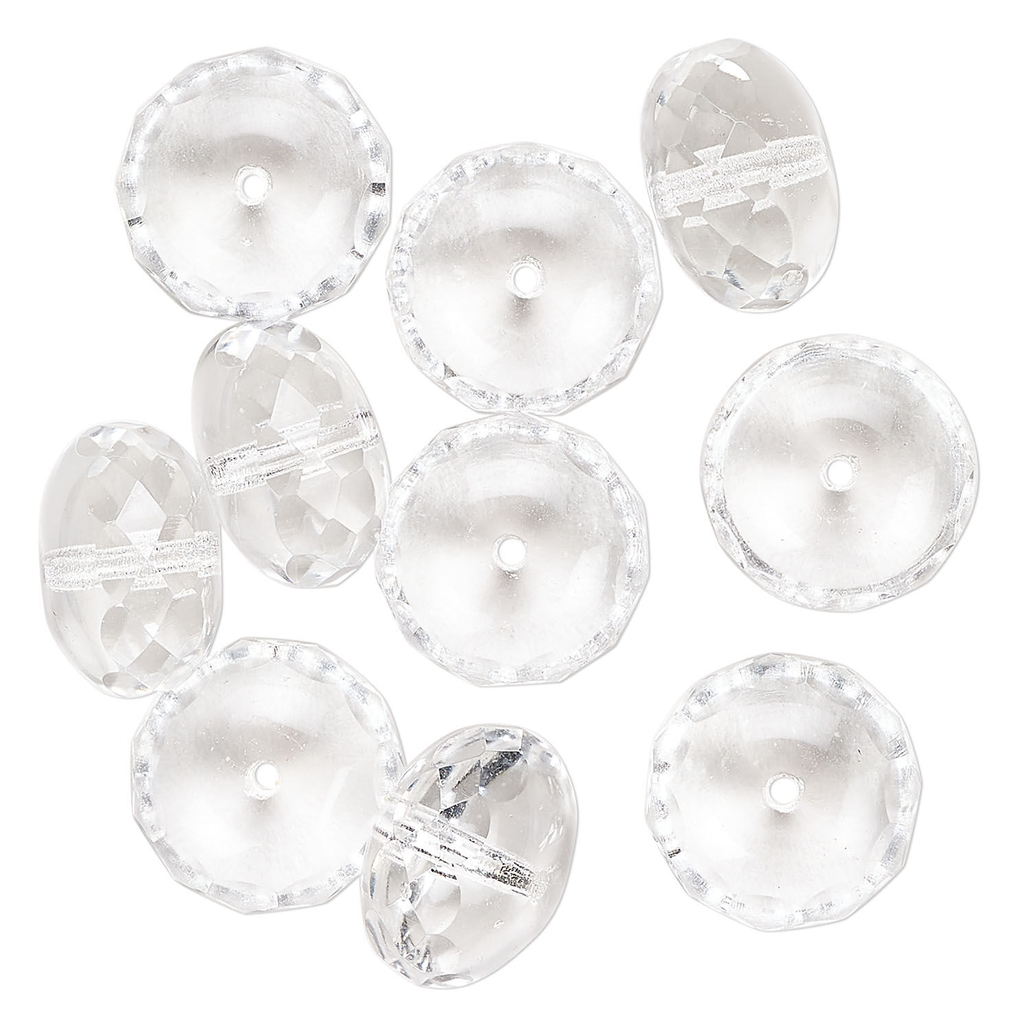 Bead, Czech fire-polished glass, clear, 17x12mm faceted rondelle. Sold per pkg of 8.
