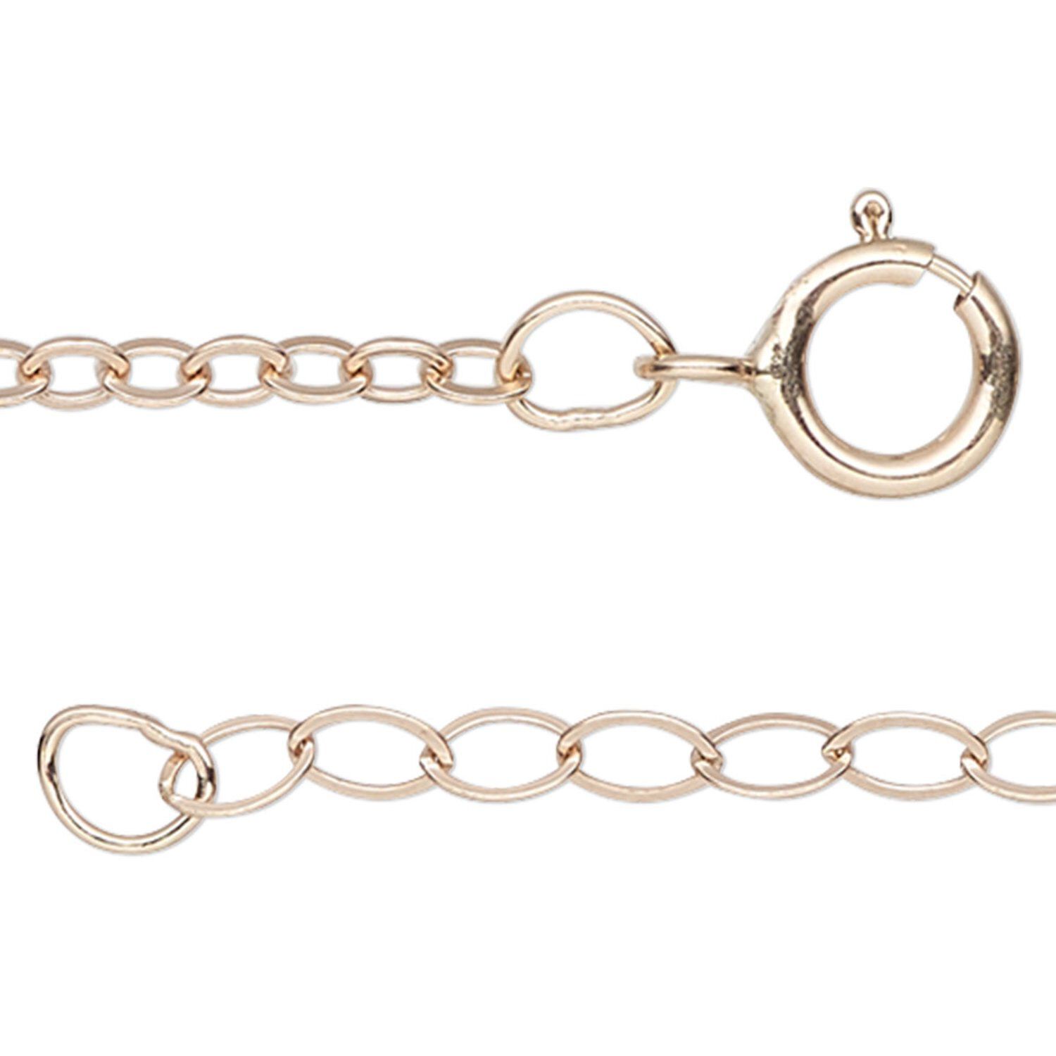 High-quality cable chain is ideal for adding charms, pendants and focals. 14Kt rose gold-filled, combining gold alloy with base metal, usually brass. Rose gold-filled has a touch of copper for a rosy gold hue for all the beauty of rose gold with the economy of gold-filled. The 2-inch extender chain and popular springring clasp offers more wearable options.