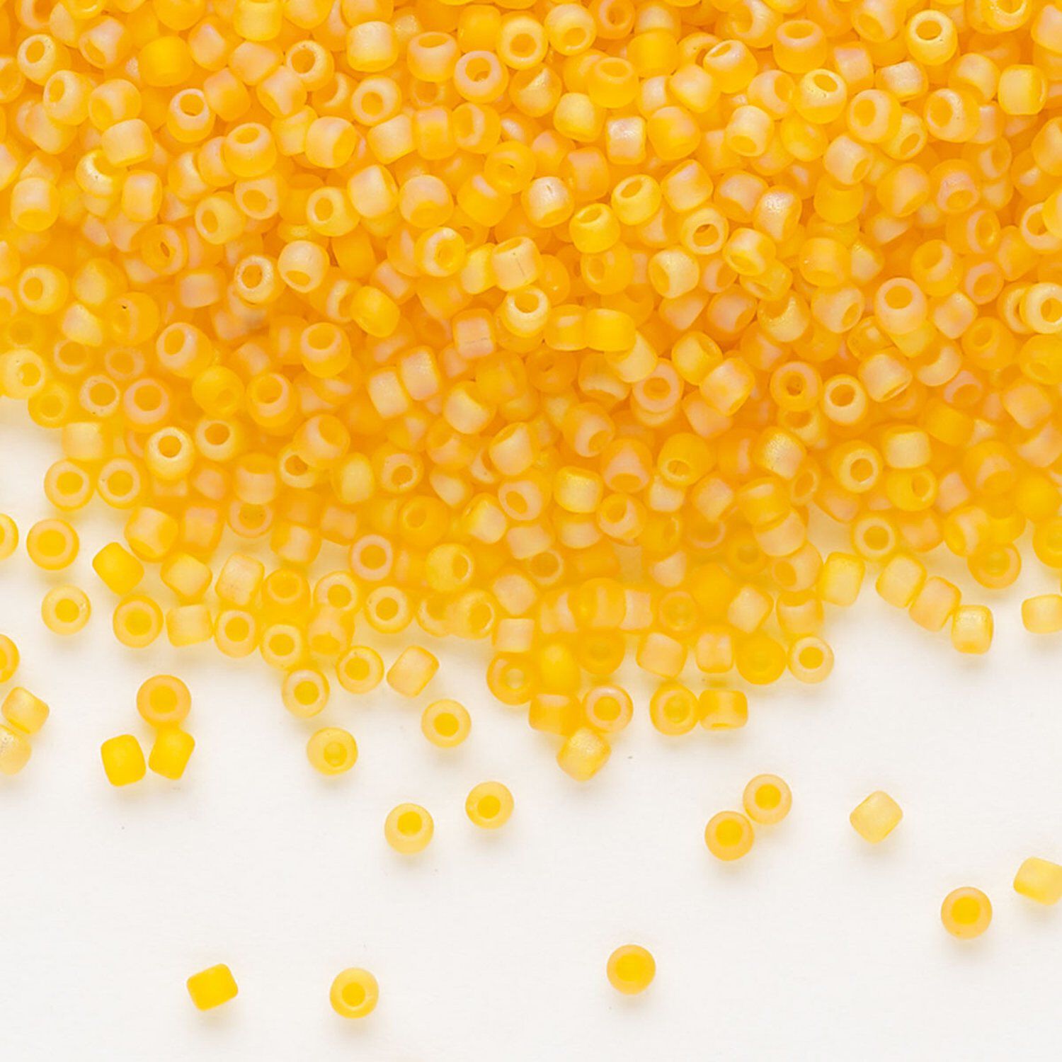 Seed bead, Dyna-Mites™, glass, pkg/40g, #11 round, translucent frosted rainbow orange, (6FAB 11/0 RR).
