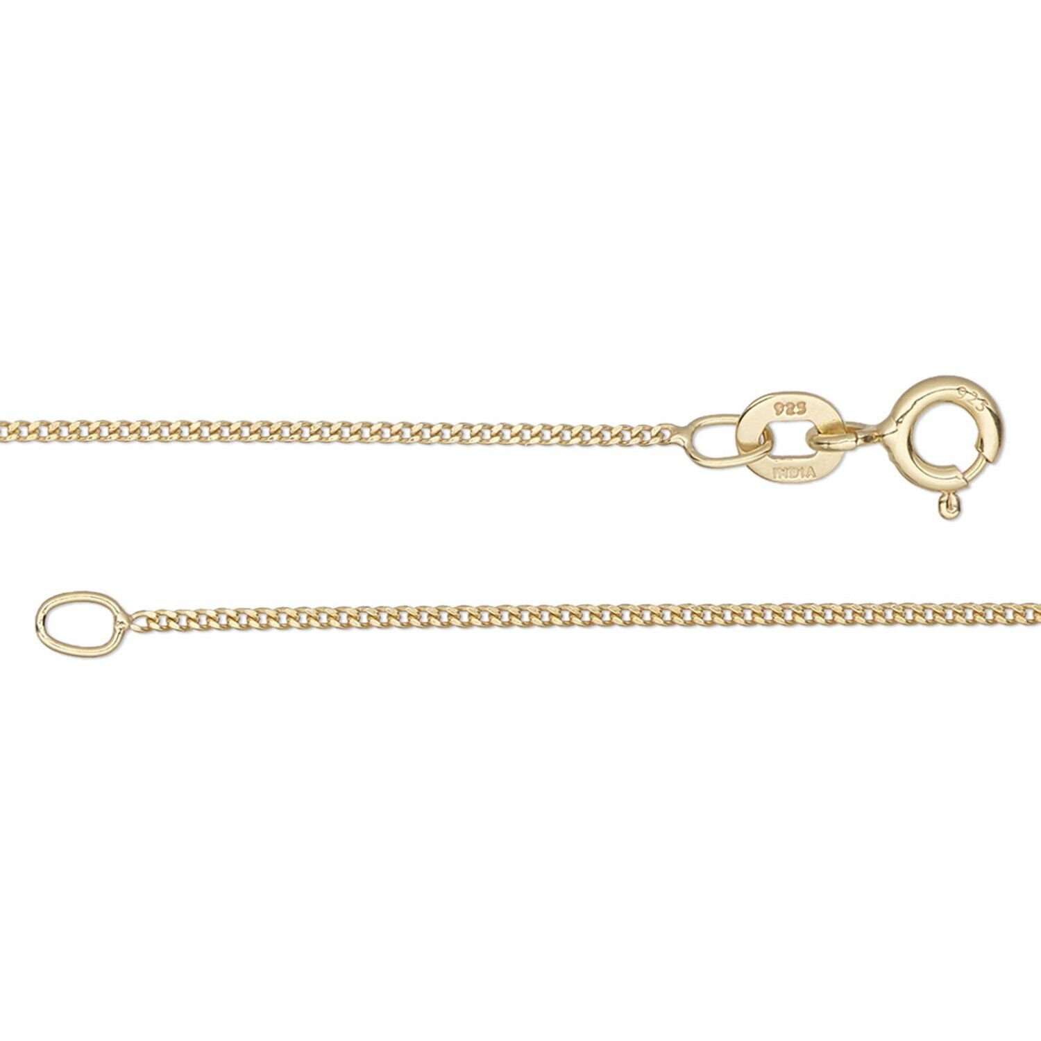 Distinctive, lightweight, petite curb chain with 14Kt gold-plated sterling silver is as gentle on the skin as solid gold jewelry, making gold-plated a very economical option. The chain comes complete with a matching springring clasp.