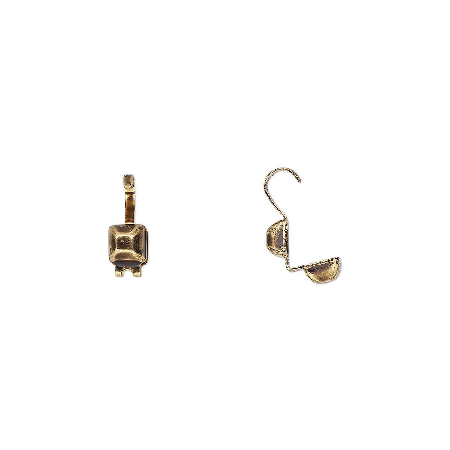Bead tip, Hot Tips®, antique gold-plated brass, 7x5mm faceted square. Sold per pkg of 100.