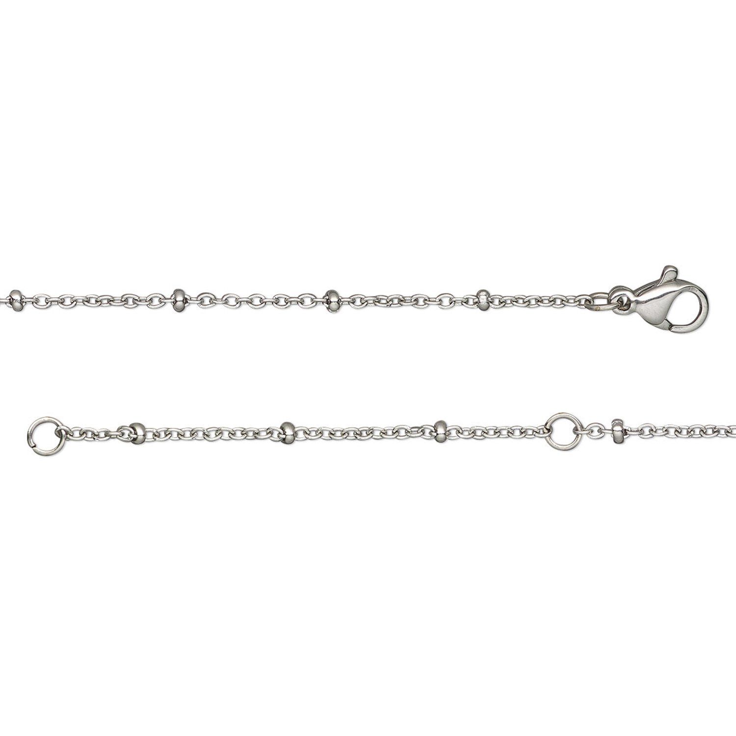Chain, stainless steel, 2.2mm beaded, wearable at 18 and 20 inches with lobster claw clasp. Sold individually.