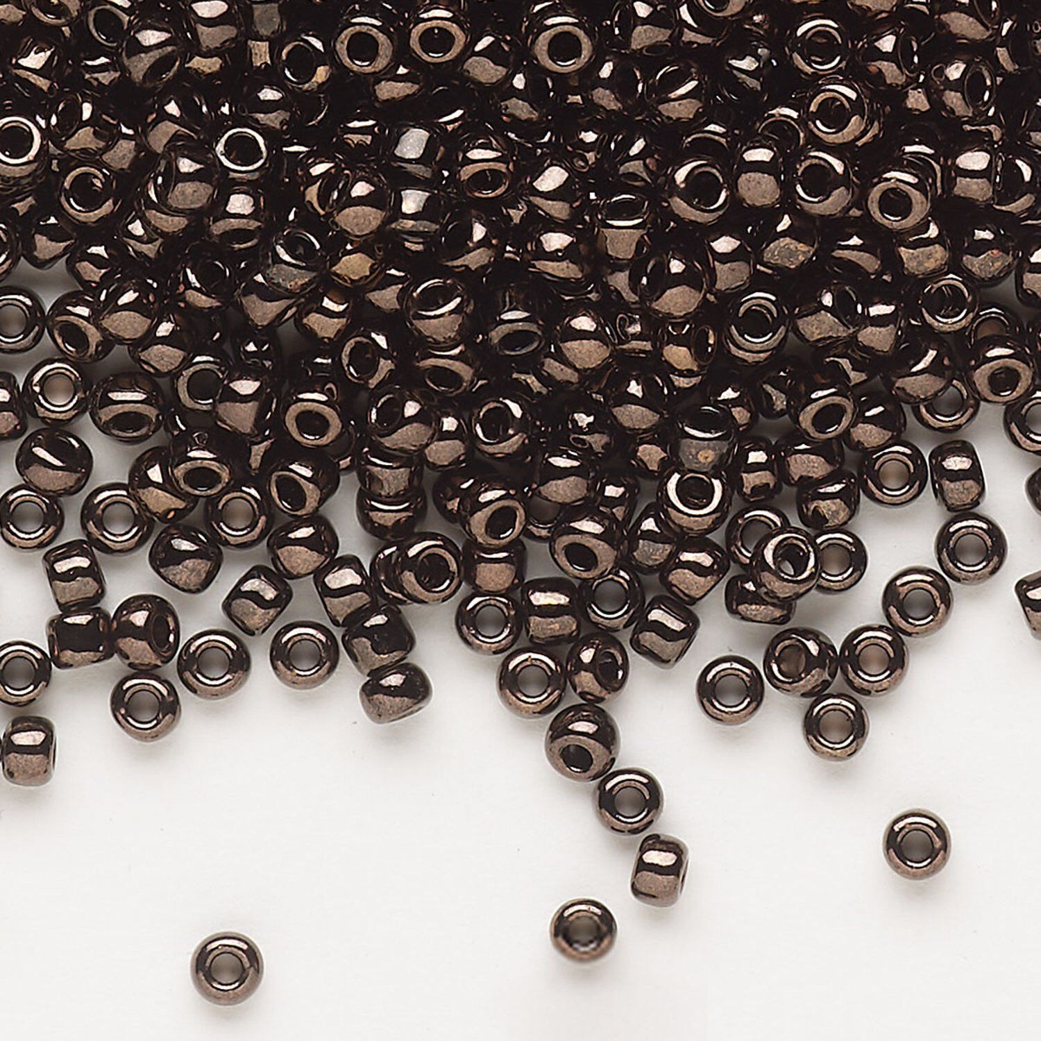 Seed bead, Dyna-Mites™, glass, opaque iris dark bronze, #8 round. Sold per 40-gram pkg.