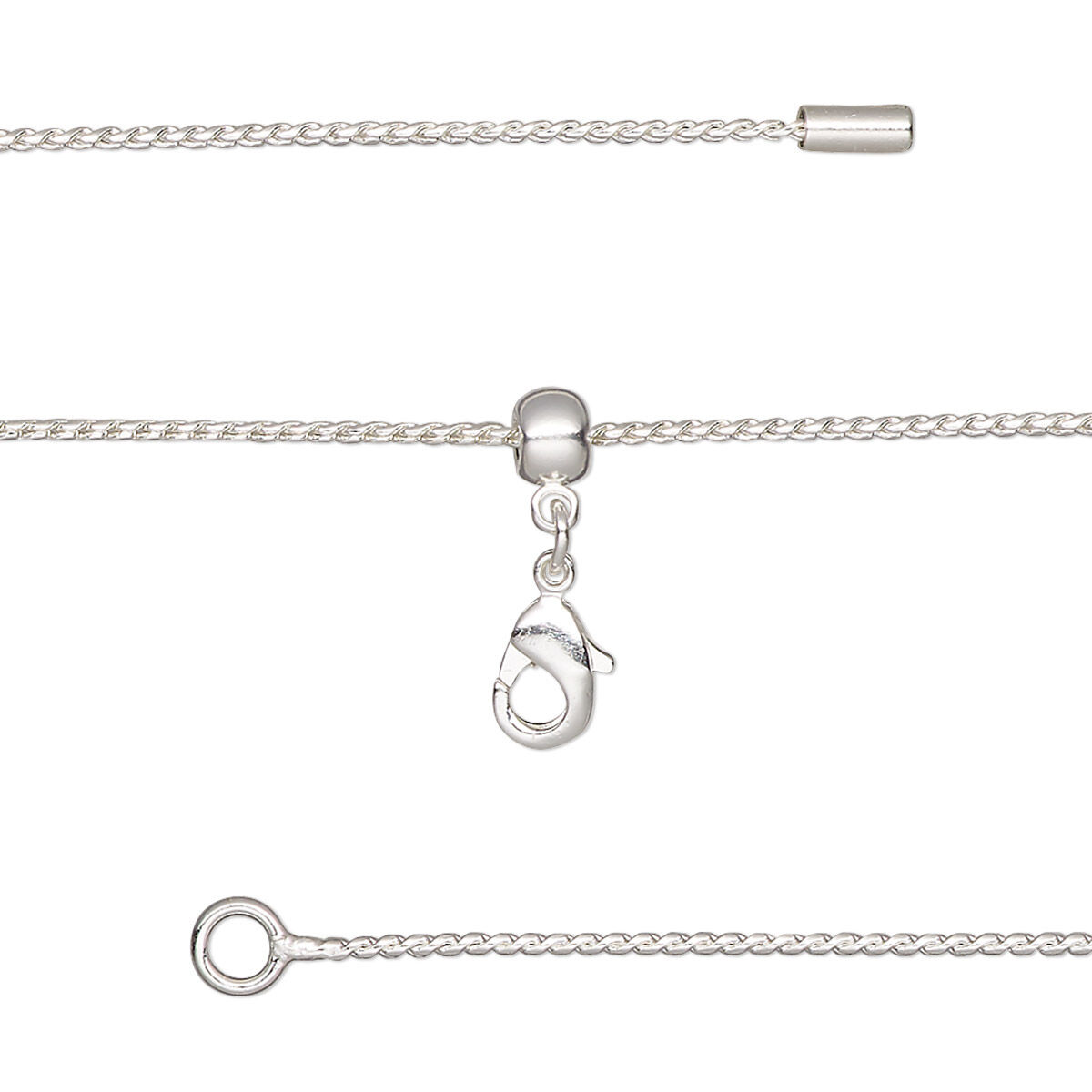 Chain 1pkg1 silver-plated serpentine, 0.9mm / lobster claw clasp, brass adjustable 16-23.5 inch