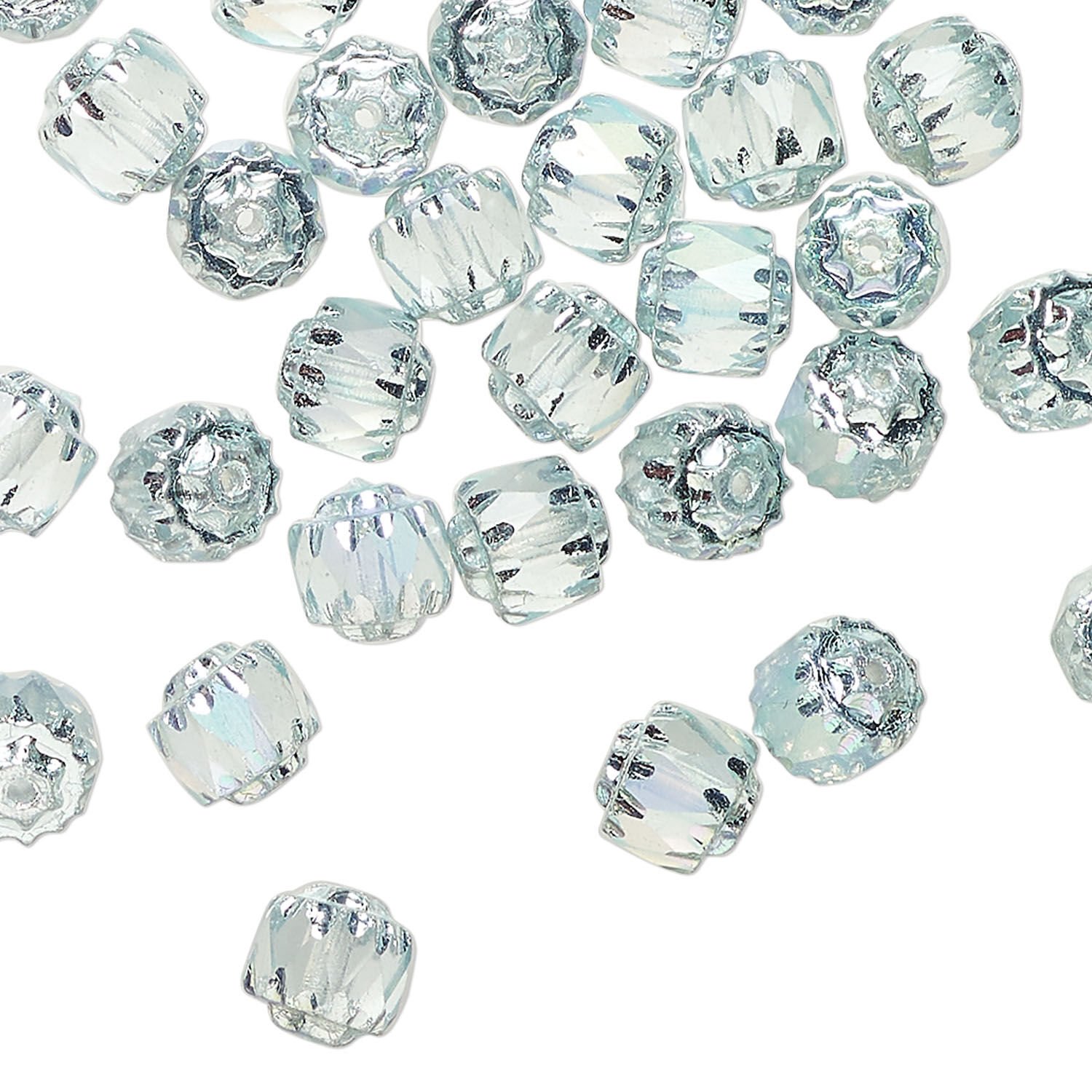 Radiant jewel tones with AB finish and metallic Apollo silver "end caps" for captivating color and eye-catching sparkle. Each quality Czech bead is made by pressing into a steel mold and coating with color, Apollo silver compound and AB finish, then grinding and polishing every facet for the glistening warmth and inner glow cathedral beads are known for. Apollo silver is the trade name for the luminous, silver-colored layer that is steam applied for maximum radiance and color brilliance. Size and shape may vary slightly and color may vary from dye lot to dye lot.