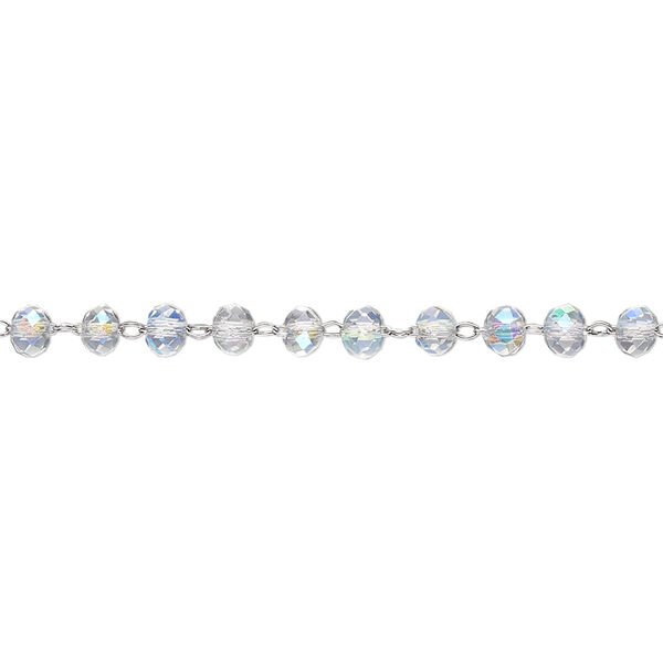 Chain 1pkg1 beaded, 3.5mm faceted rondelle, clear AB glass / stainless steel 1 yard unfinished