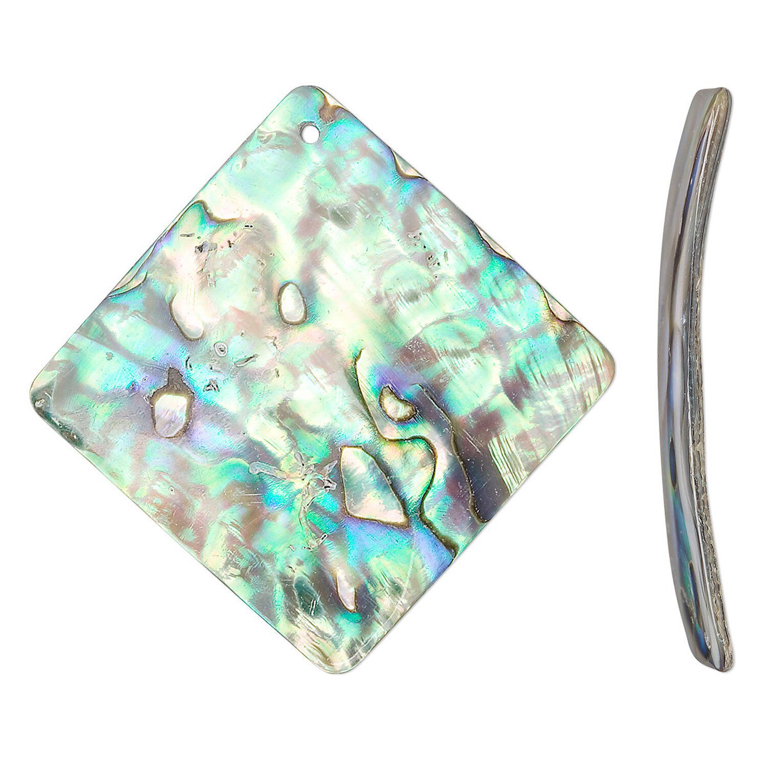 Focal, paua shell (natural), 52x52mm diamond, Mohs hardness 3-1/2. Sold individually.