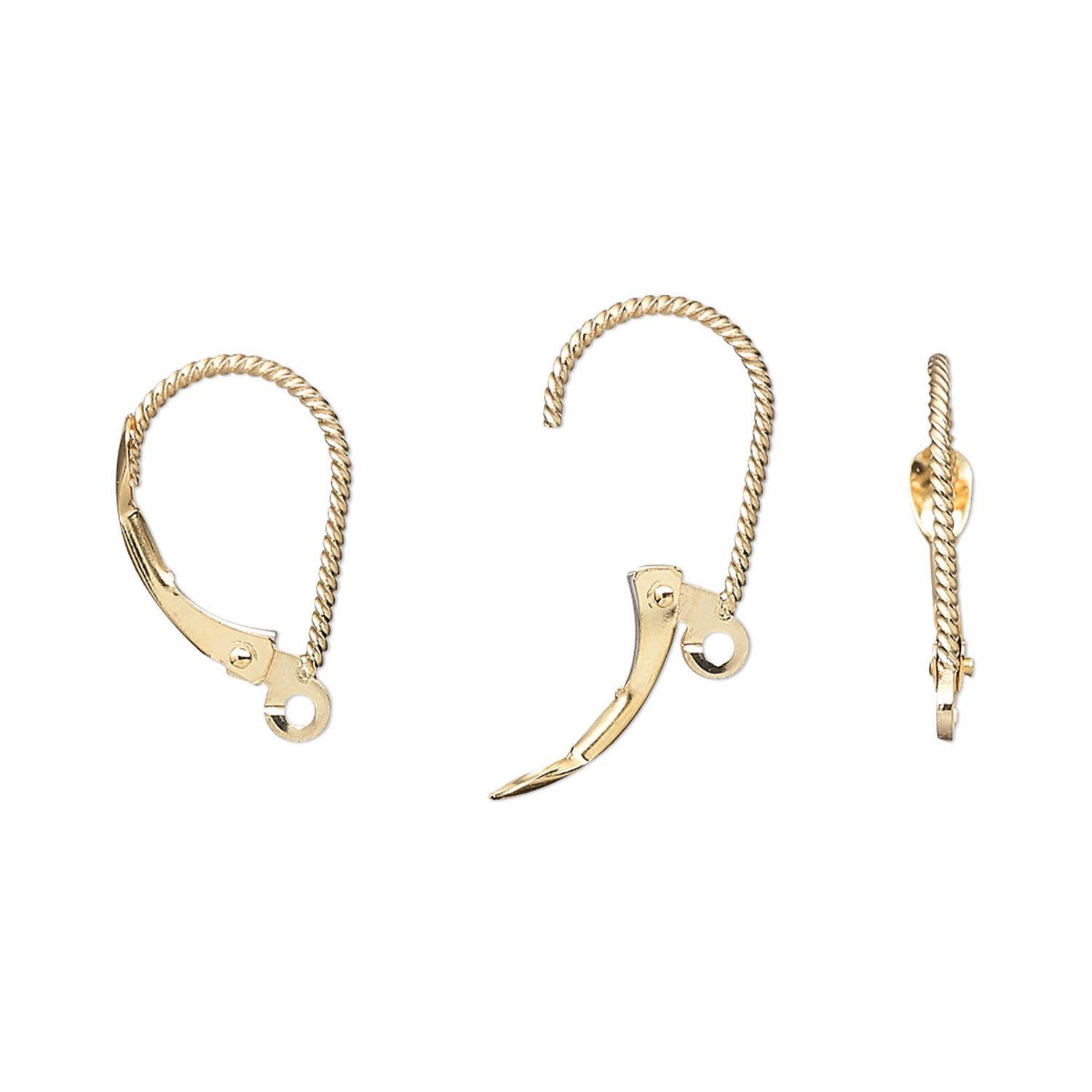 Ear wire leverback 1pkg2 14Kt gold, 16mm twist / open loop, 1 pair
