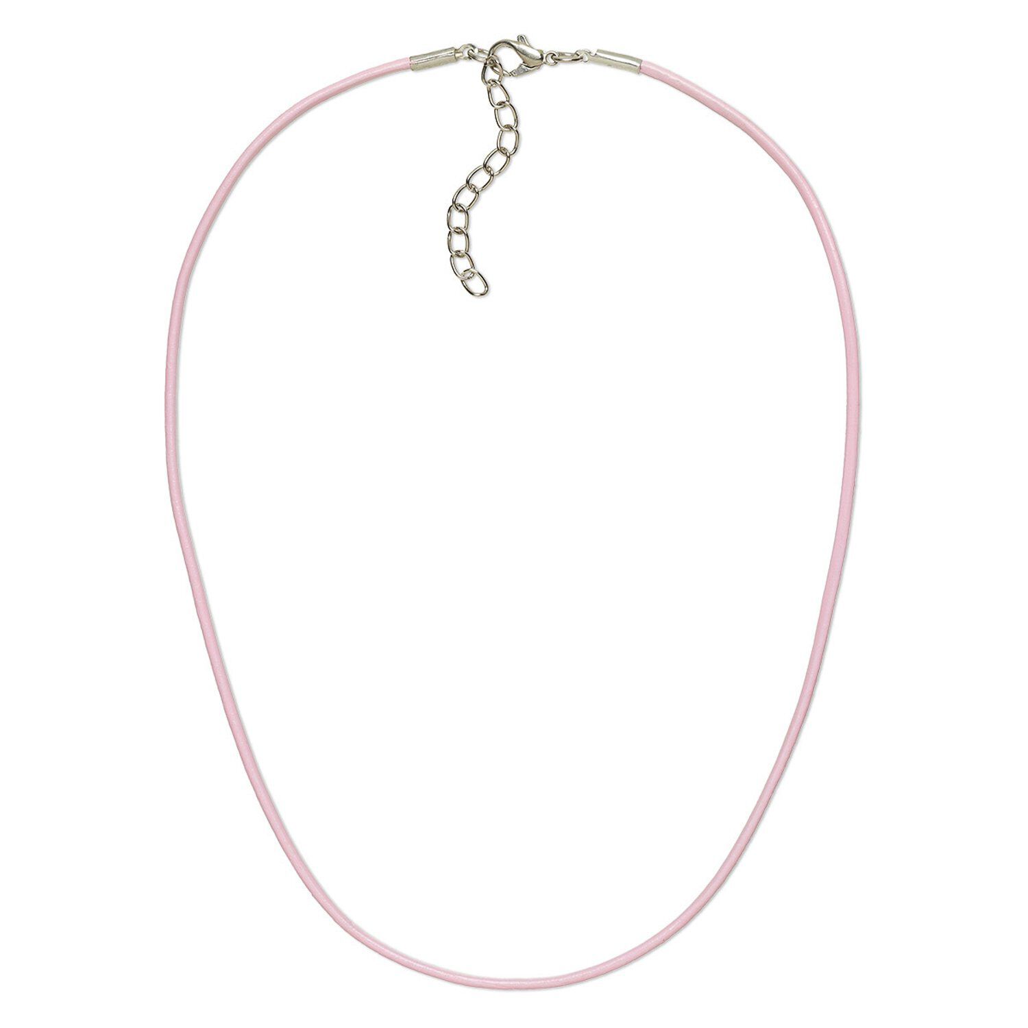 Necklace cord, leather and imitation rhodium-plated brass and steel, pink, 2mm round, 16 inches with 2-inch extender chain and lobster claw clasp. Sold per pkg of 6.