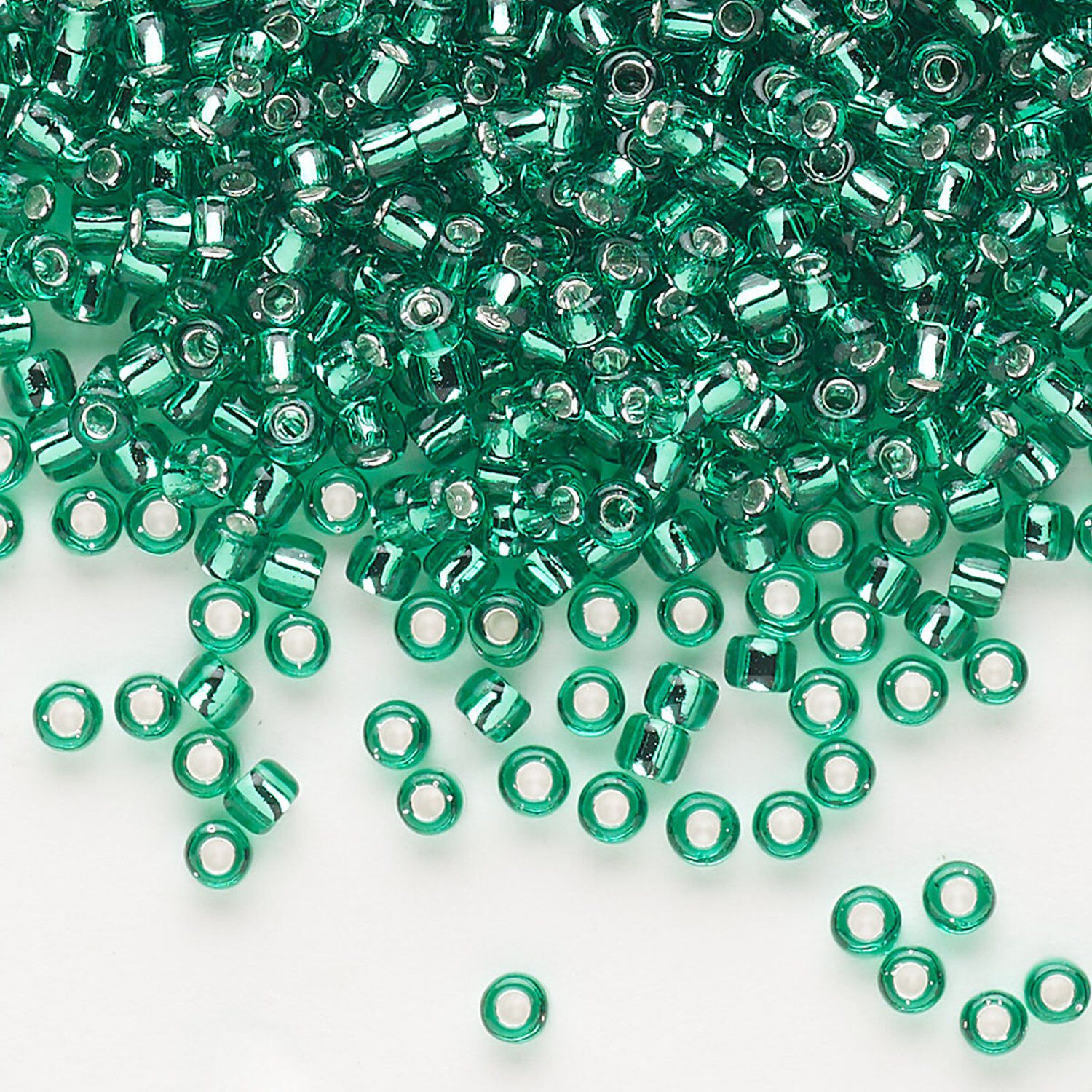 Seed bead, Dyna-Mites™, glass, silver-lined translucent jade green, #8 round. Sold per 40-gram pkg.