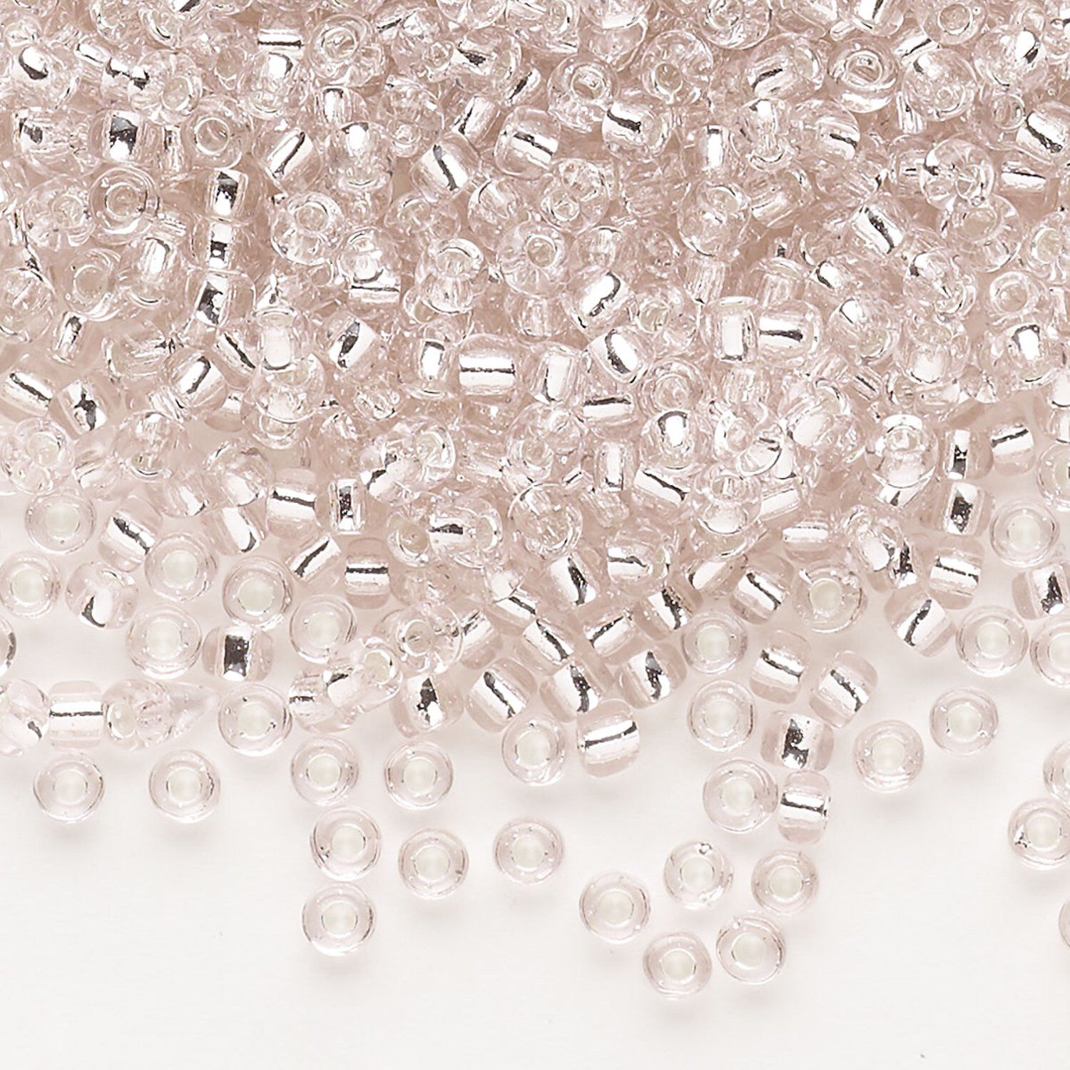 Seed bead, Dyna-Mites™, glass, silver-lined translucent light pink, #8 round. Sold per 1/2 kilogram pkg.