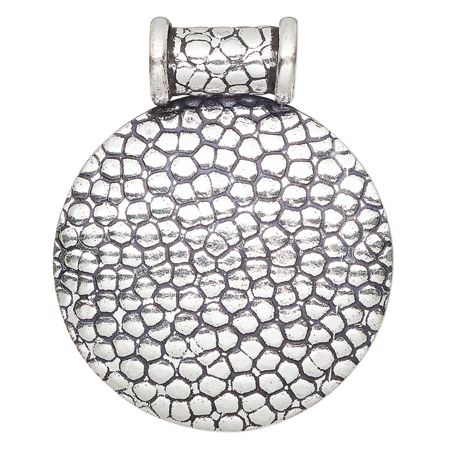 Pendant, antique silver-plated copper, 47x38mm round with textured cobblestone design and tube bail. Sold individually.