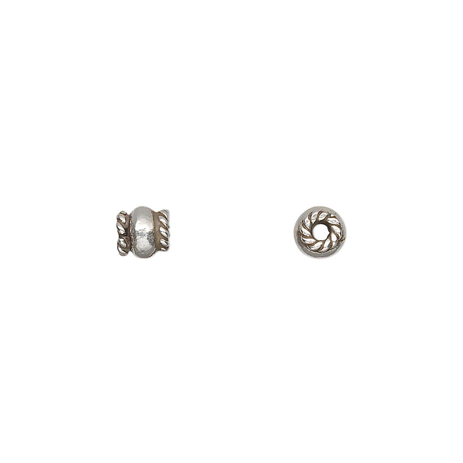 Bead, Hill Tribes, antiqued sterling silver, 5x4mm round with rope ends. Sold per pkg of 8.