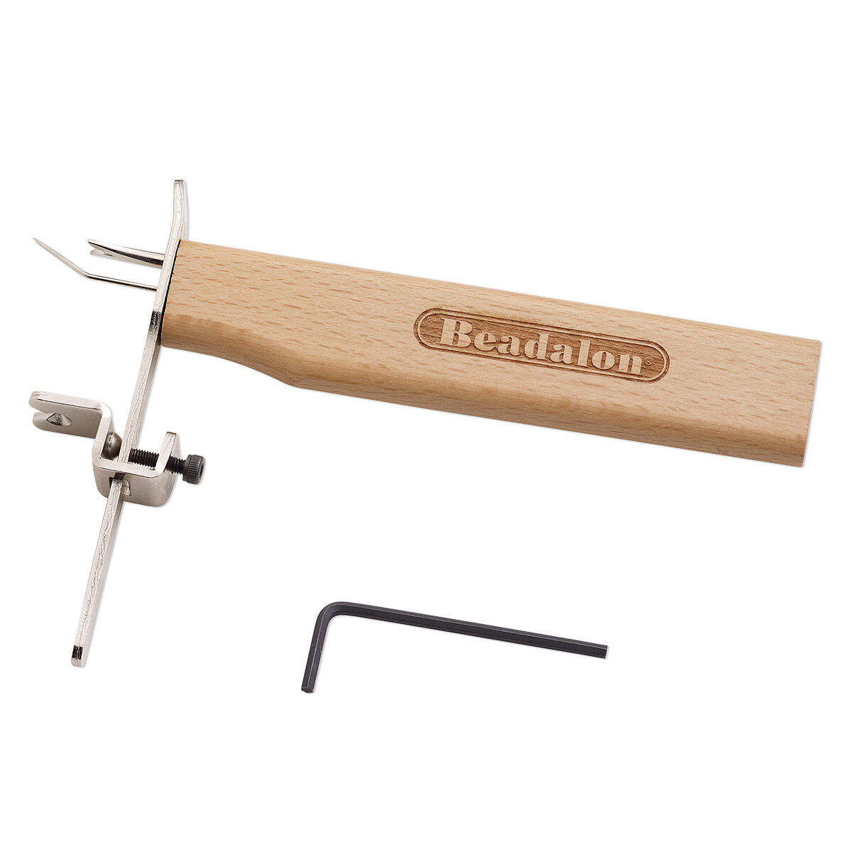 Tin cup necklaces (made popular by the movie of the same name) show a bead or pearl knotted in place between lengths of unadorned cord or thread. Still popular, they require precision measurement to create. Make them with consistently spaced beads and the ease of the Beadalon Knotter Tool using this adapted knotter tool. Simply set the preferred knot distance (use the included Allen wrench to tighten the screw on the extender) and begin knotting.