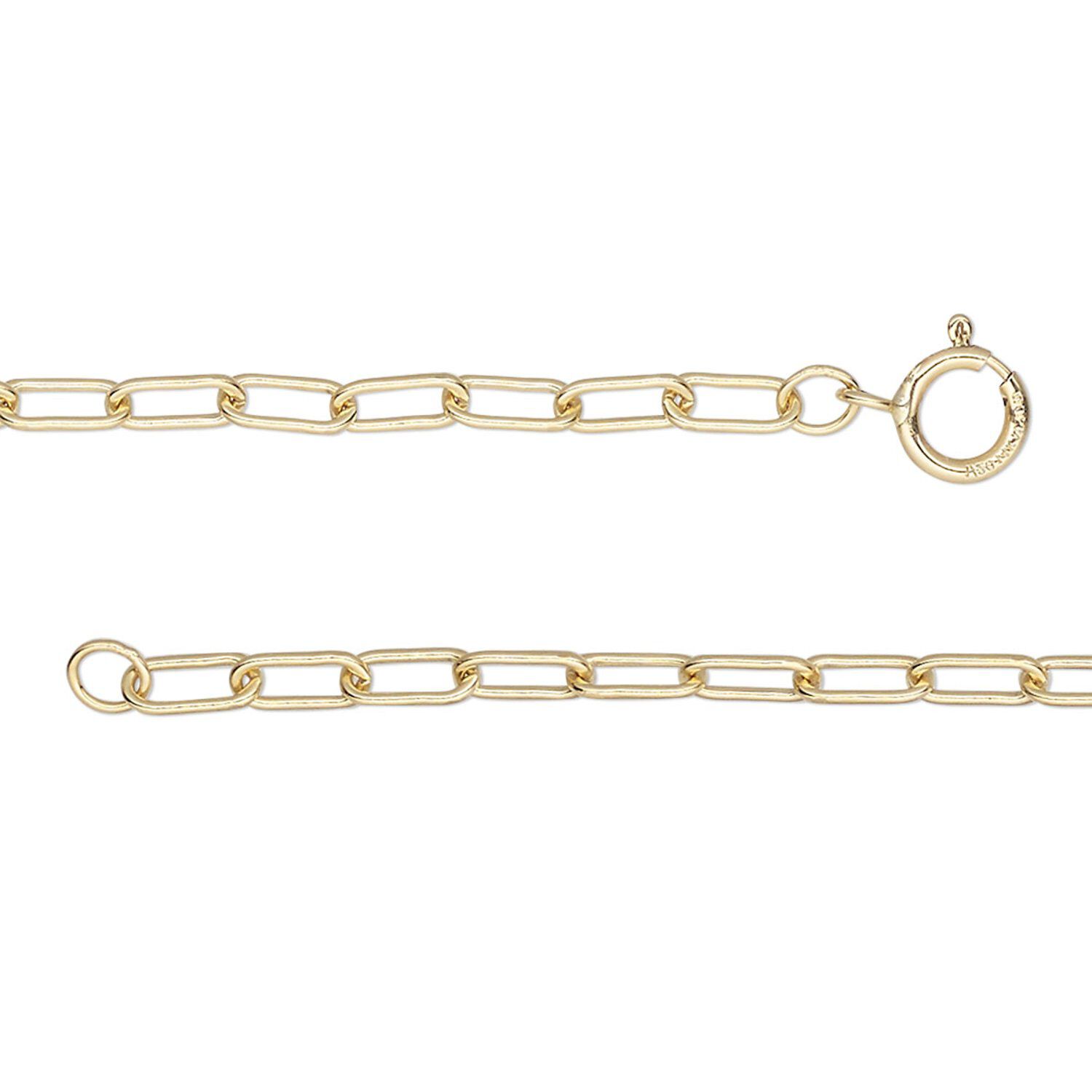 Easily embellish the oblong links of paperclip chain with charms, drops, focal and more. Use shorter lengths of chain as links or dangling elements in earrings and tassels. This luxurious 14Kt gold-filled option offers all the beauty of gold for a fraction of the price. Gold-filled chain is known for its durability and can be worn by most people without reaction or difficulties. These chains arrive ready to wear with a clasp and are an excellent choice for layering with other chains.