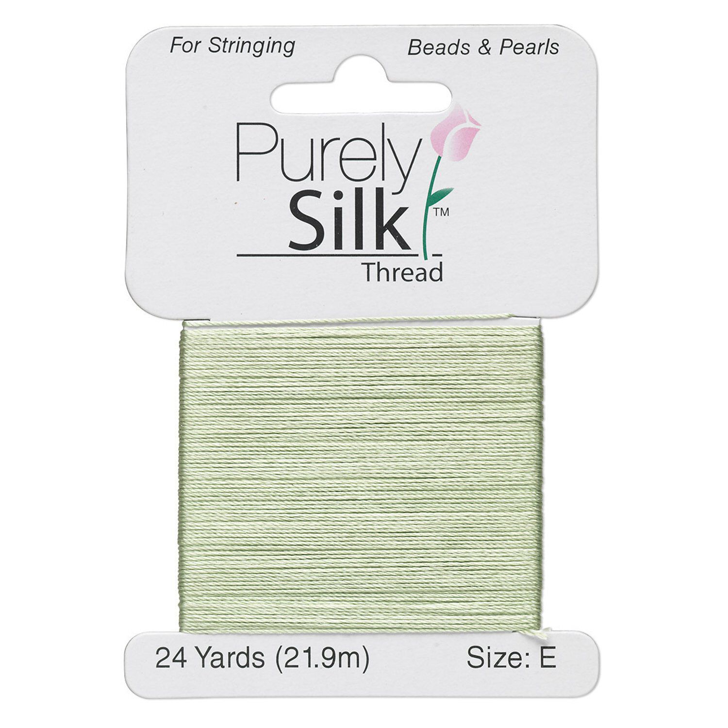 Thread, Purely Silk™, medium green, size E. Sold per 24-yard card.