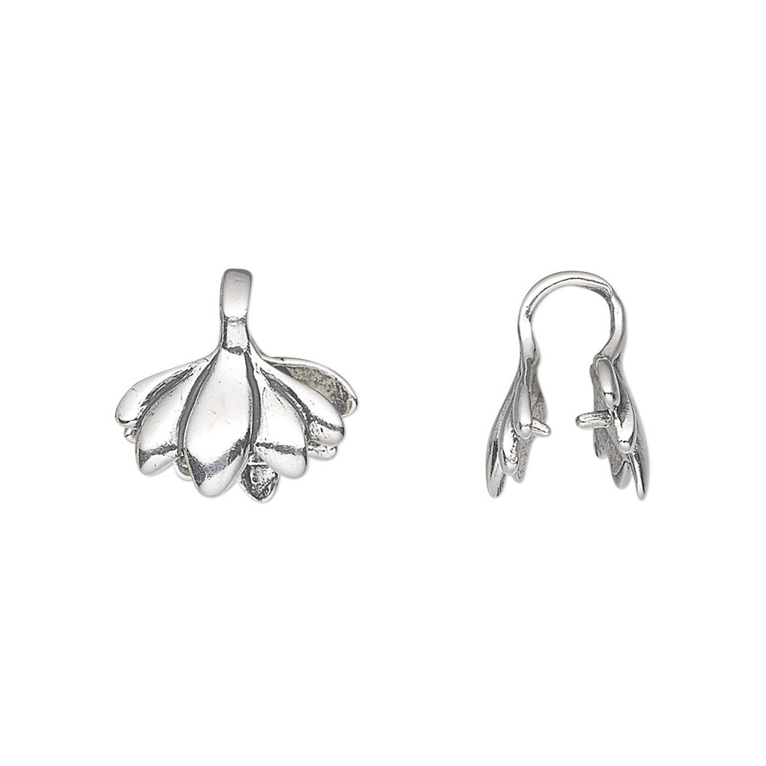 Featuring a flower design, antiqued sterling silver ice-pick bail turns cross-drilled beads, drops or focals into an instant pendant.