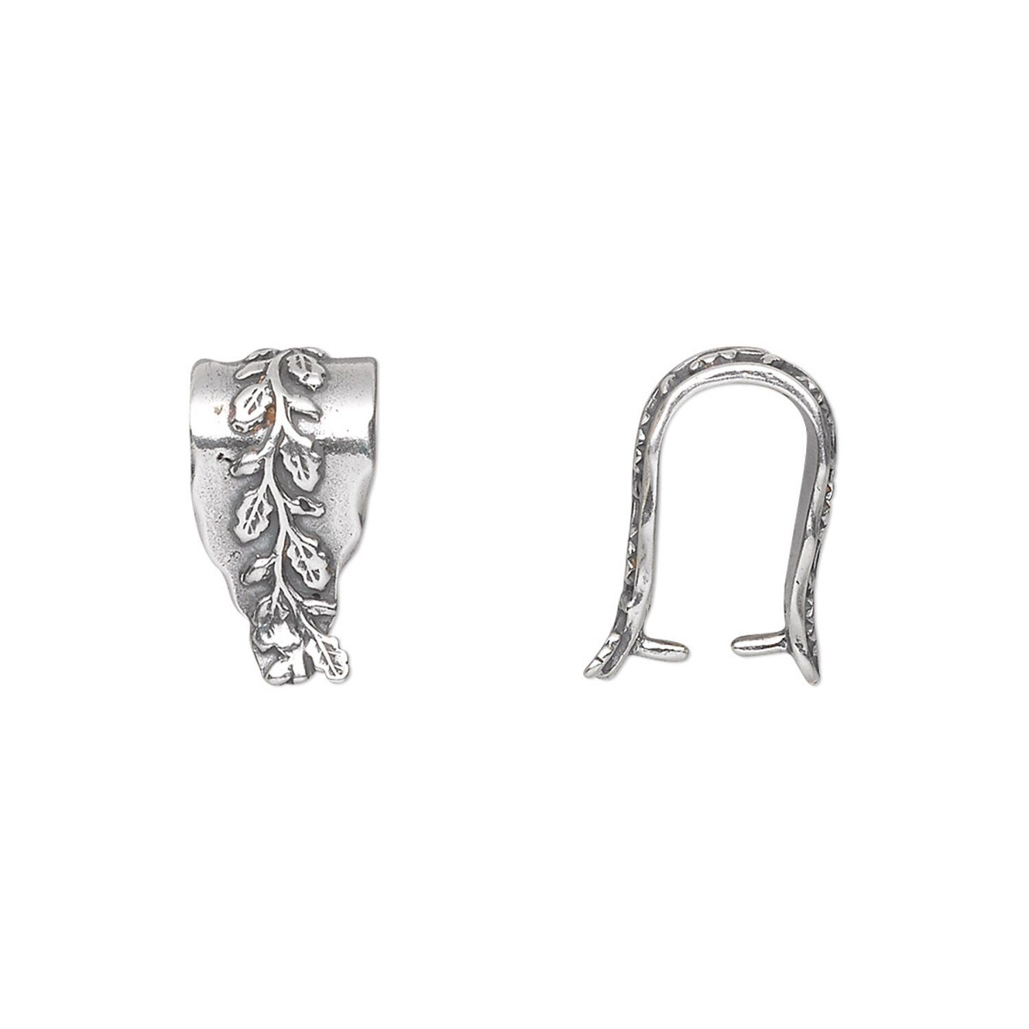 Featuring a shield design with leafy vine accents, this stylish antiqued sterling silver ice-pick bail turns a cross-drilled bead, drop or focal into an instant pendant. Bail has a grip length of 12mm.