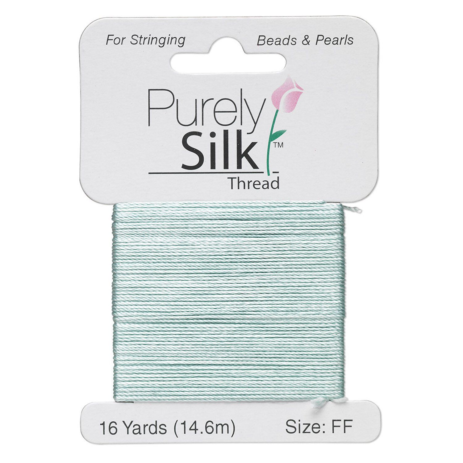 Thread, Purely Silk™, pale green, size FF. Sold per 16-yard card.