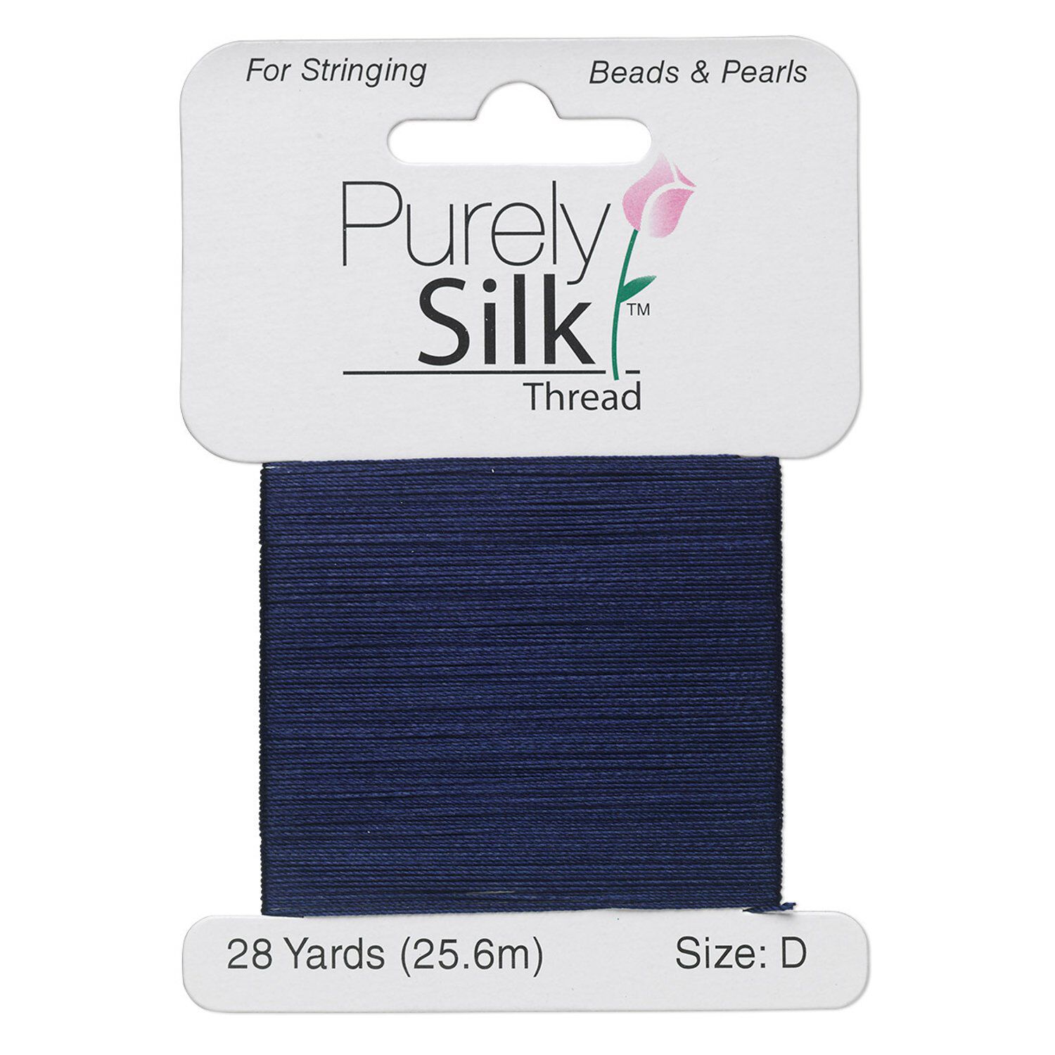 Thread, Purely Silk™, navy blue, size D. Sold per 28-yard card.