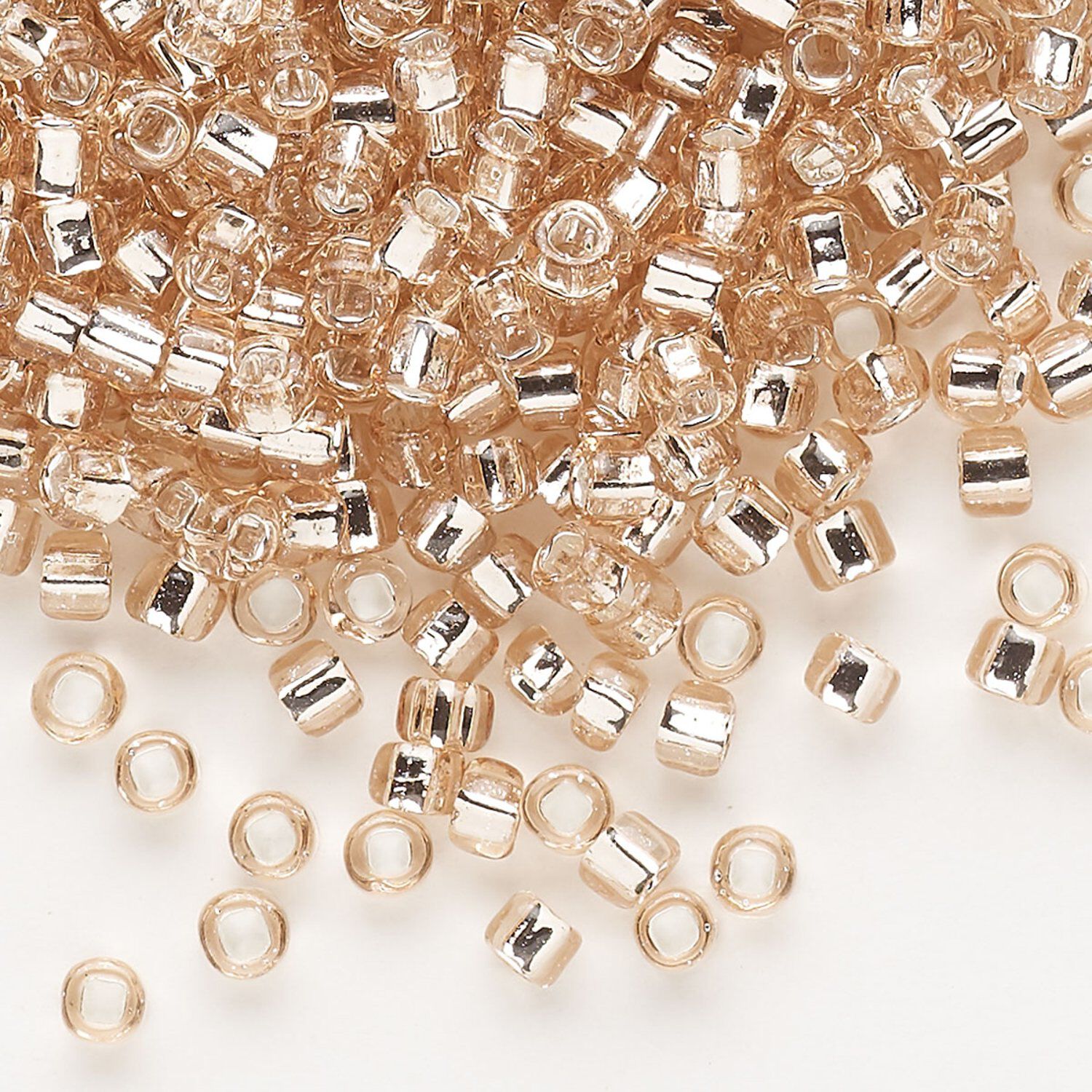 Seed bead, Dyna-Mites™, glass, silver-lined translucent light pink, #6 round with square hole. Sold per 40-gram pkg.
