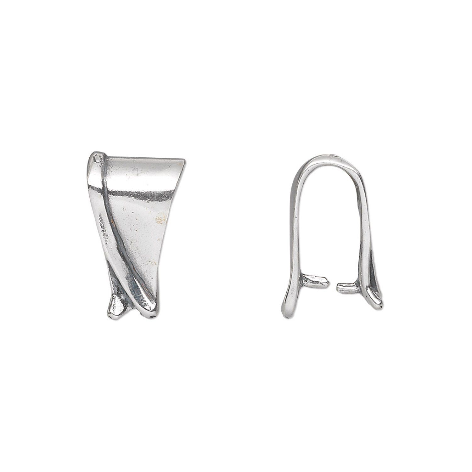 Stylish antiqued sterling silver ice-pick bail turns cross-drilled beads, drops or focals into an instant pendant. Featuring a shield design with a simple swirl accent, this bail has a grip length of 10mm.