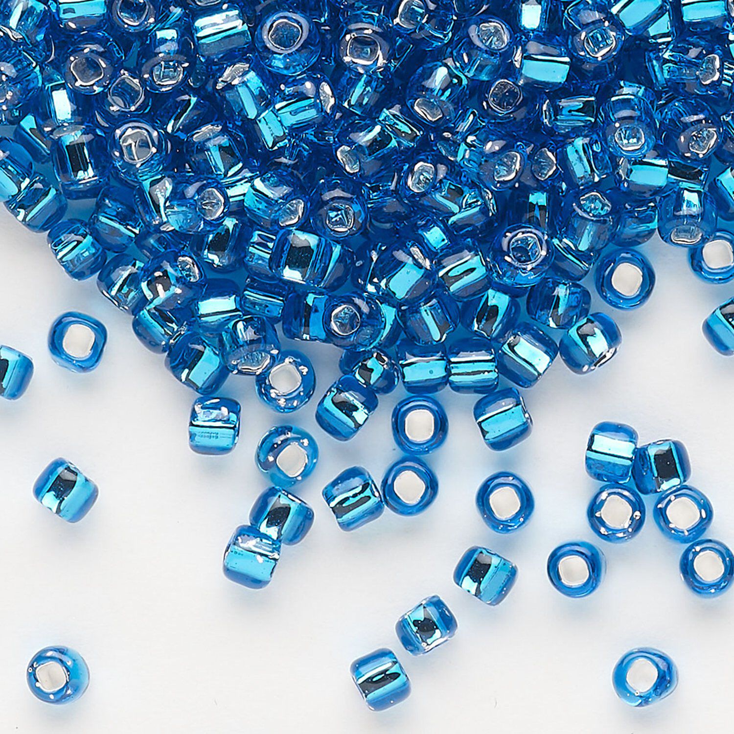 Seed bead, Dyna-Mites™, glass, silver-lined translucent turquoise blue, #6 round with square hole. Sold per 1/2 kilogram pkg.