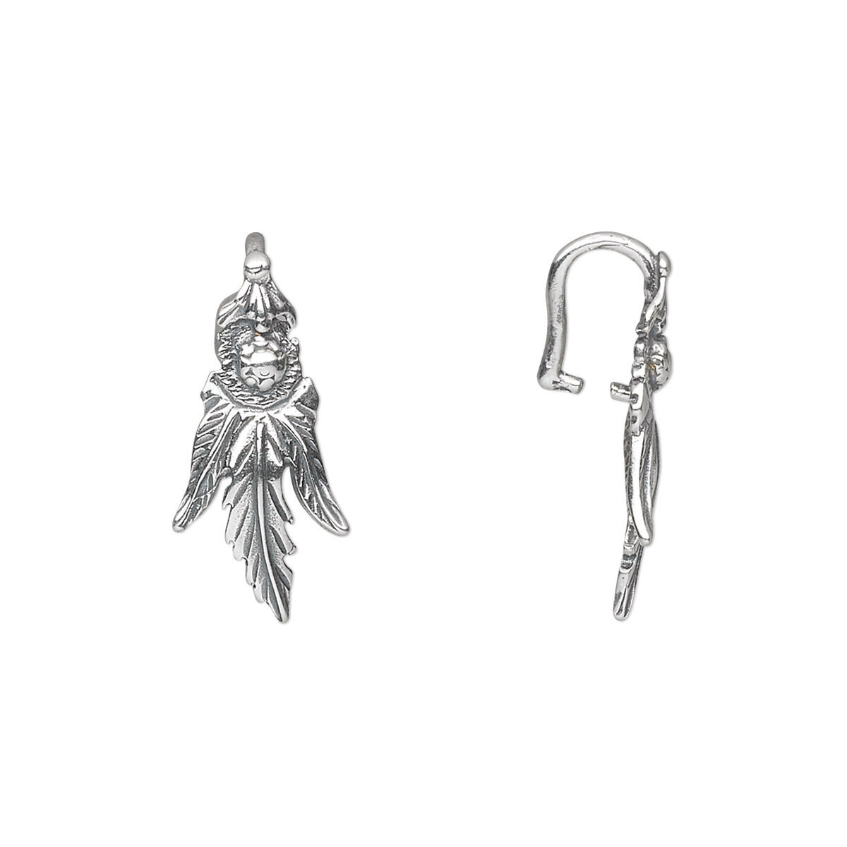 Featuring a fancy leaf design, this stylish antiqued sterling silver ice-pick bail turns a cross-drilled bead, drop or focal into an instant pendant. Bail has a grip length of 5mm.