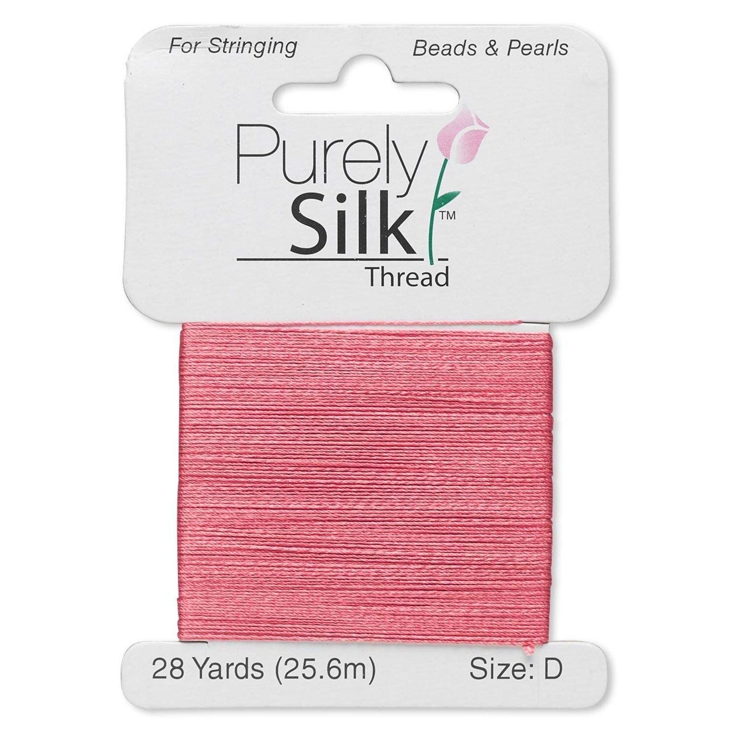 Thread, Purely Silk™, coral, size D. Sold per 28-yard card.