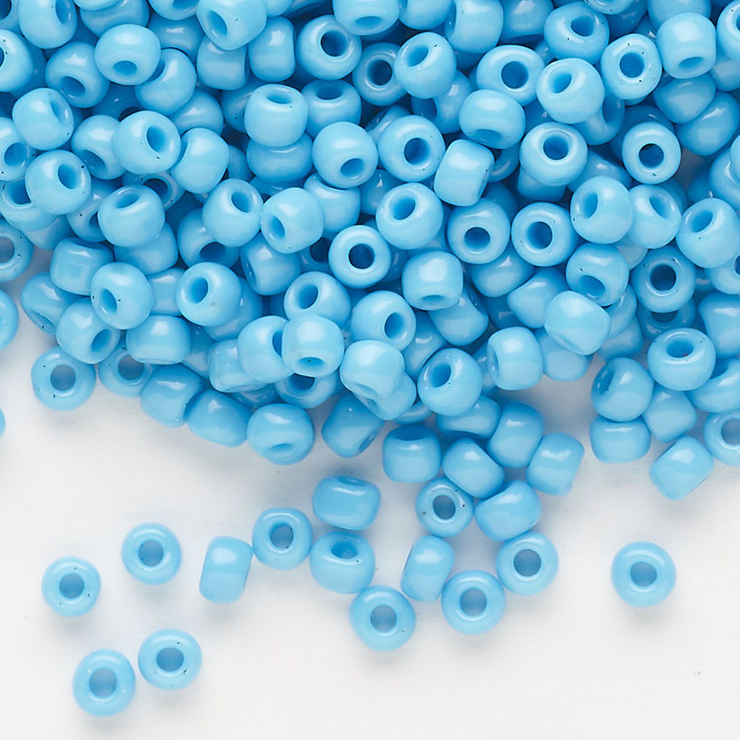 Seed bead, Dyna-Mites™, glass, opaque aqua, #6 round. Sold per 1/2 kilogram pkg.