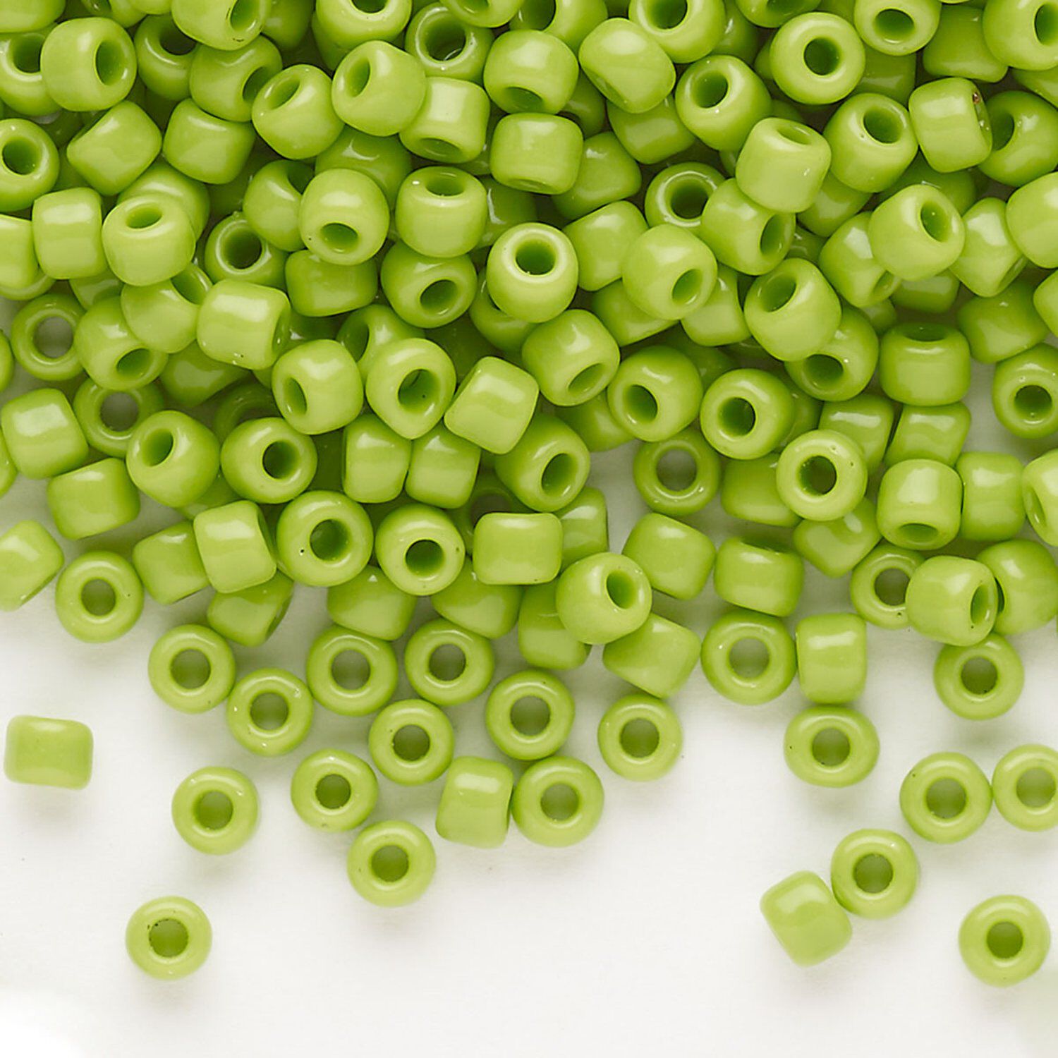 Seed bead, Dyna-Mites™, glass, opaque lime, #6 round. Sold per 1/2 kilogram pkg.