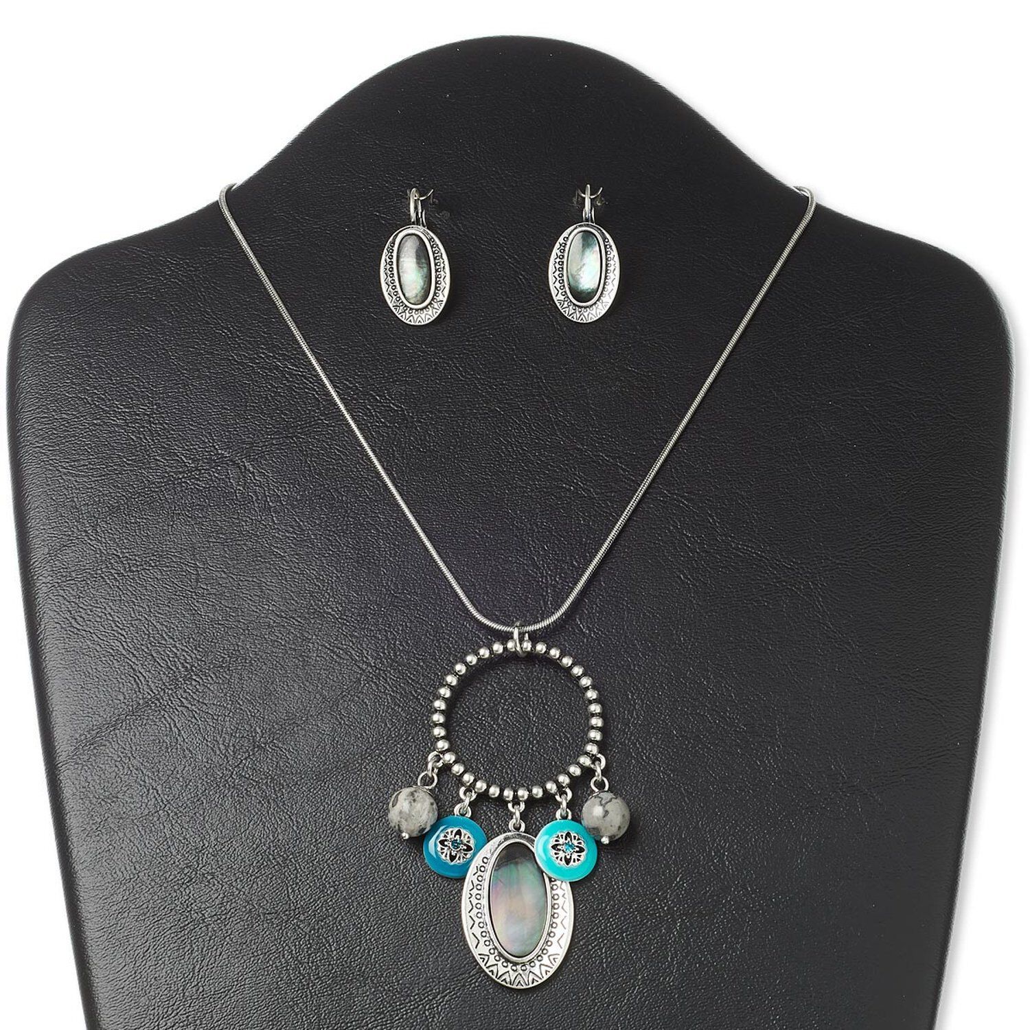 Featuring a necklace with a multi-component dangle and including oval earrings, this attractive set is a quick-selling addition to jewelry lines. Colors, shapes and sizes may vary in each lot.