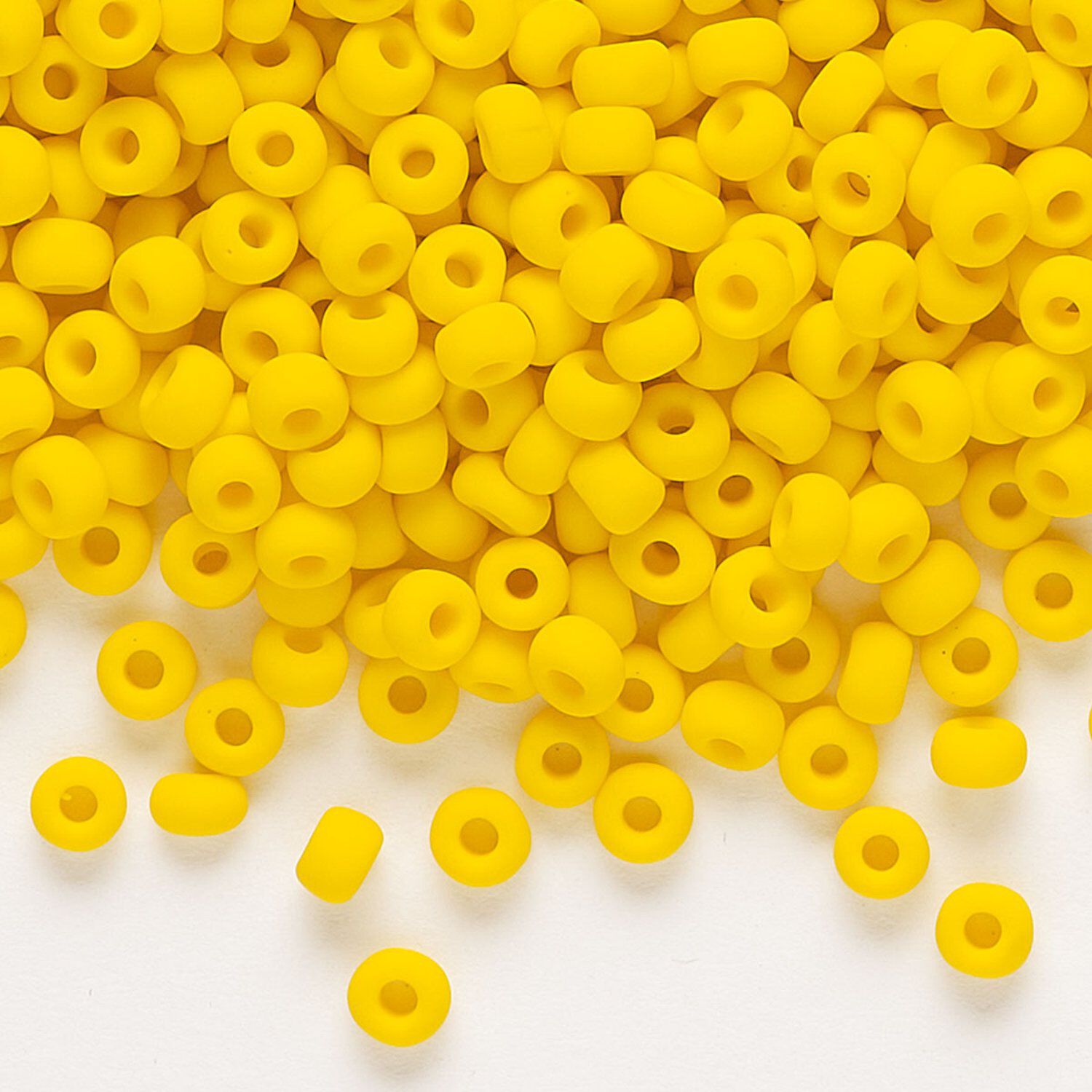 Seed bead, Dyna-Mites™, glass, opaque matte dark yellow, #6 round. Sold per 40-gram pkg.