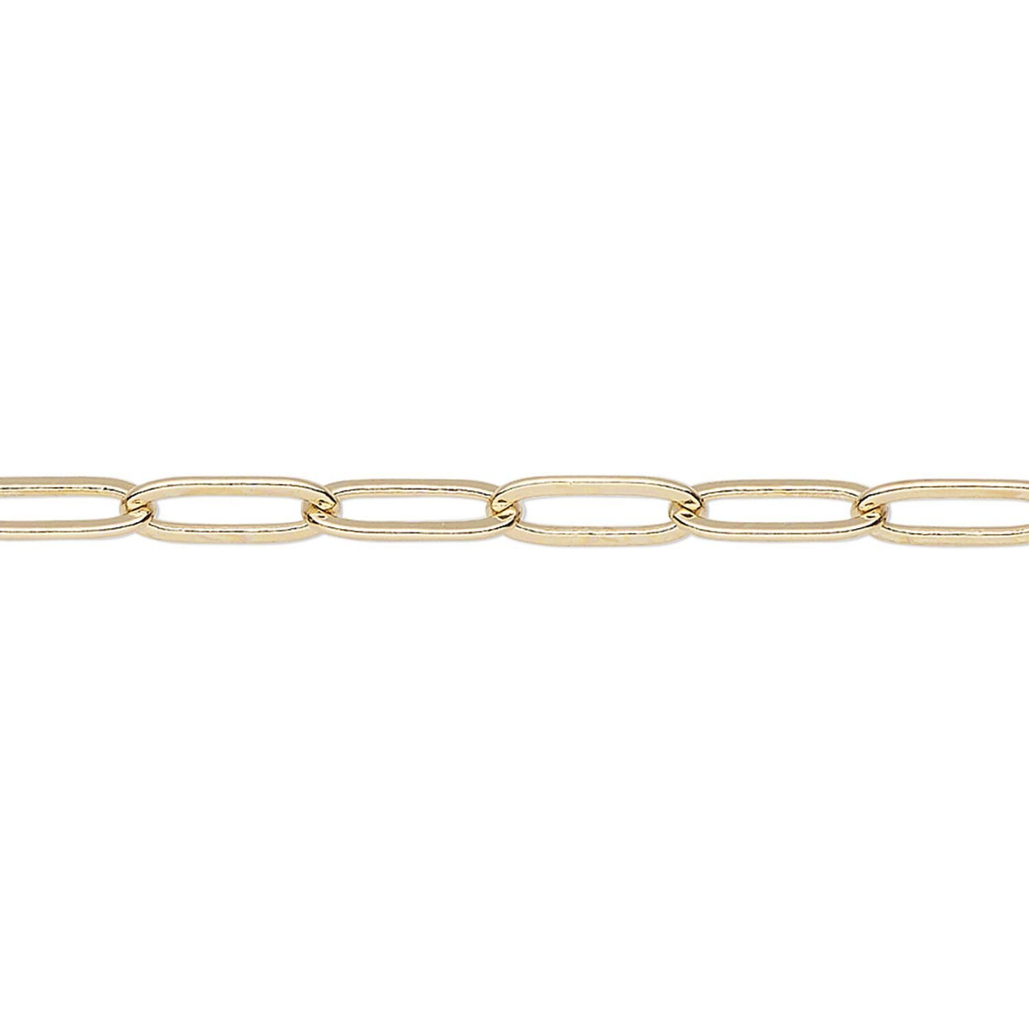 Chain, gold-finished brass, 3.8mm paperclip. Sold per pkg of 50 feet.