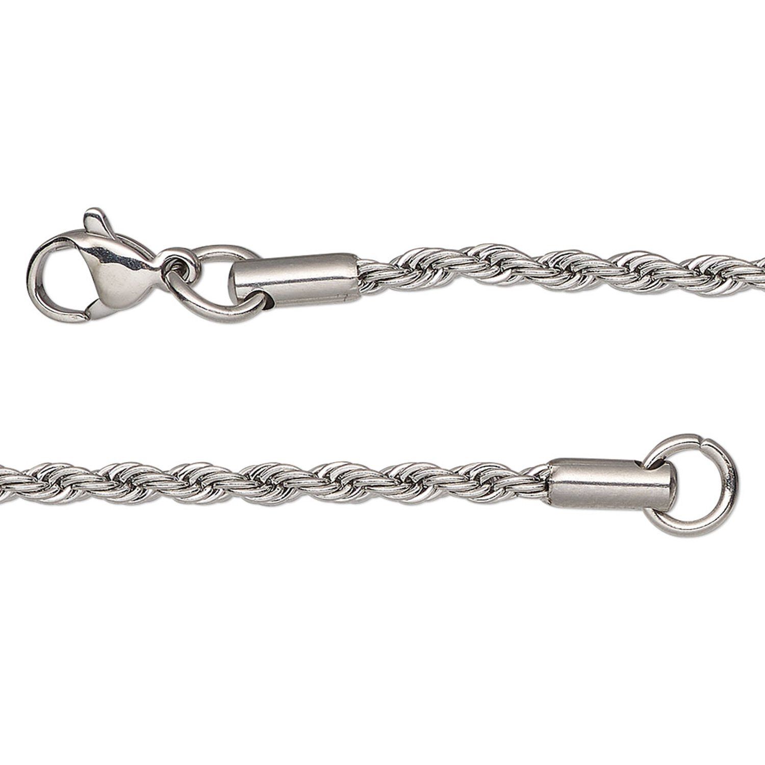 Chain, stainless steel, 2.4mm French rope, 18 inches with lobster claw clasp. Sold individually.