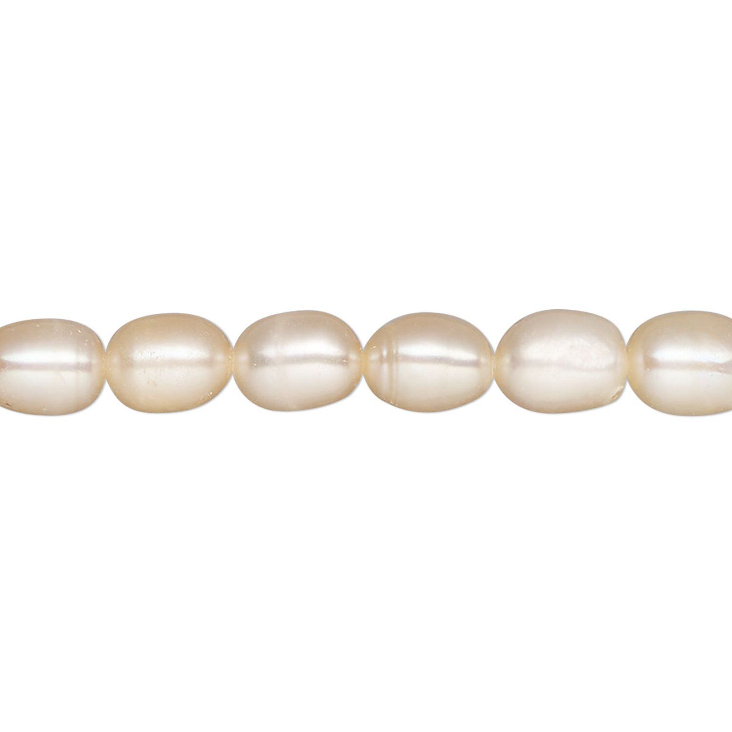 Pearl, cultured freshwater, peach, 6-7mm rice, B- grade, Mohs hardness 2-1/2 to 4. Sold per 14-inch strand.