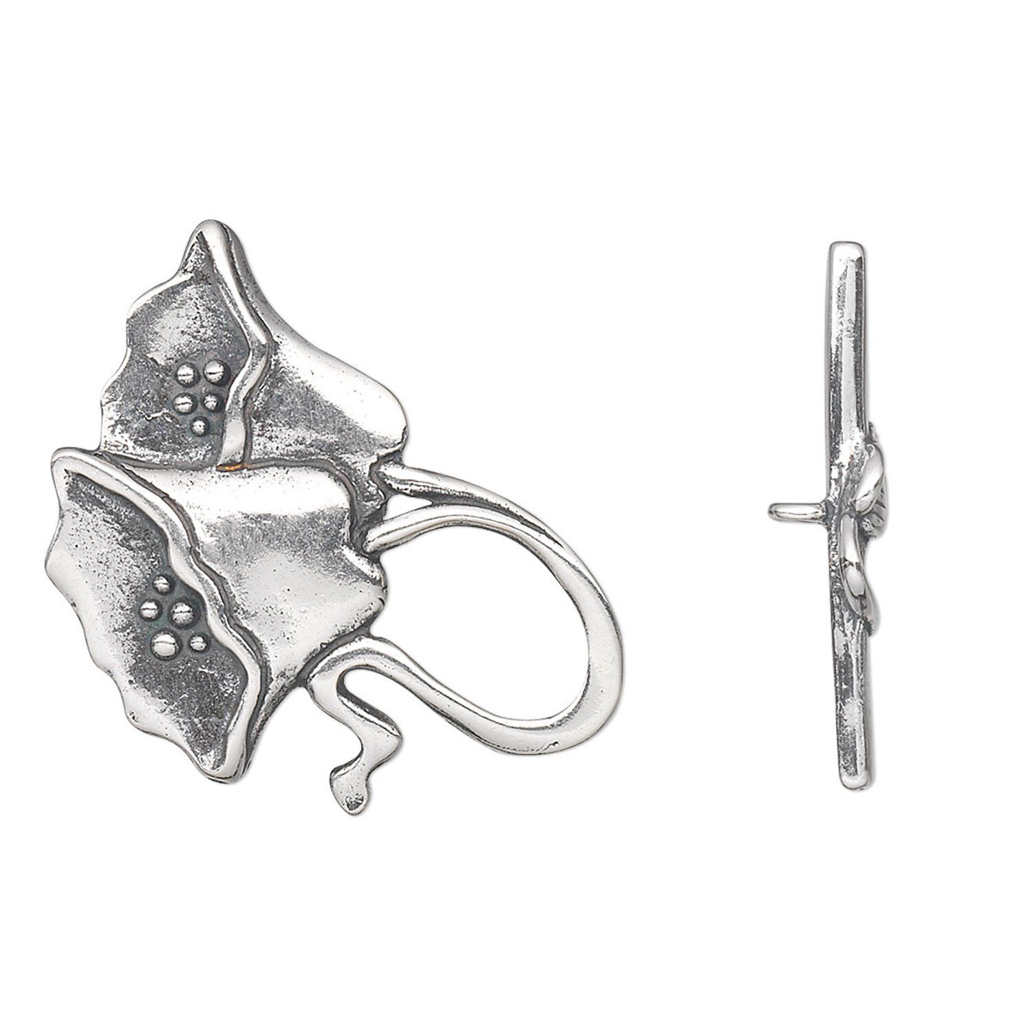 Clasp toggle 1pkg1 sterling silver, 26mm double flower, antiqued 1-strand