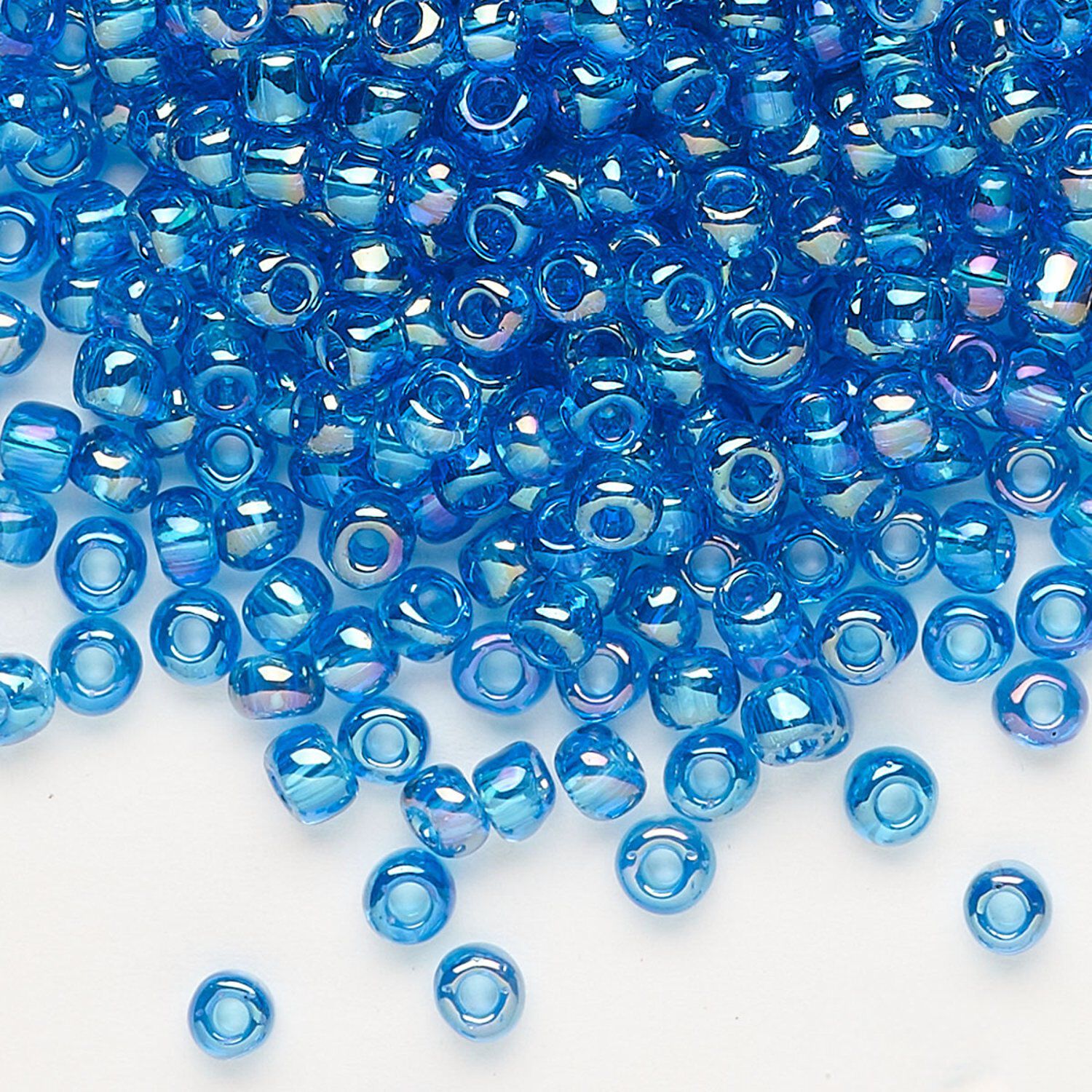 Seed bead, Dyna-Mites™, glass, transparent rainbow teal, #6 round. Sold per 40-gram pkg.