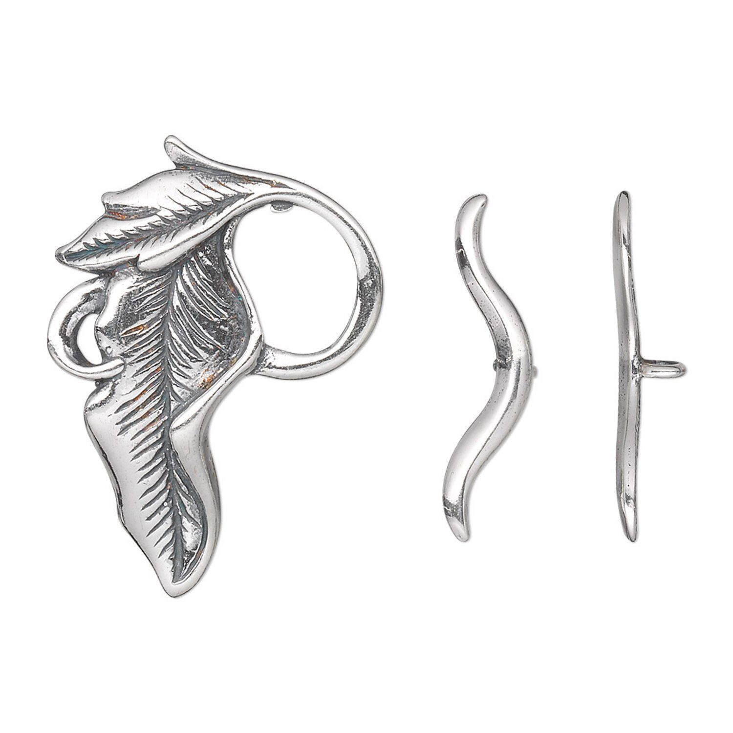 Clasp toggle 1pkg1 sterling silver, 28x20mm fancy leaf, antiqued 1-strand