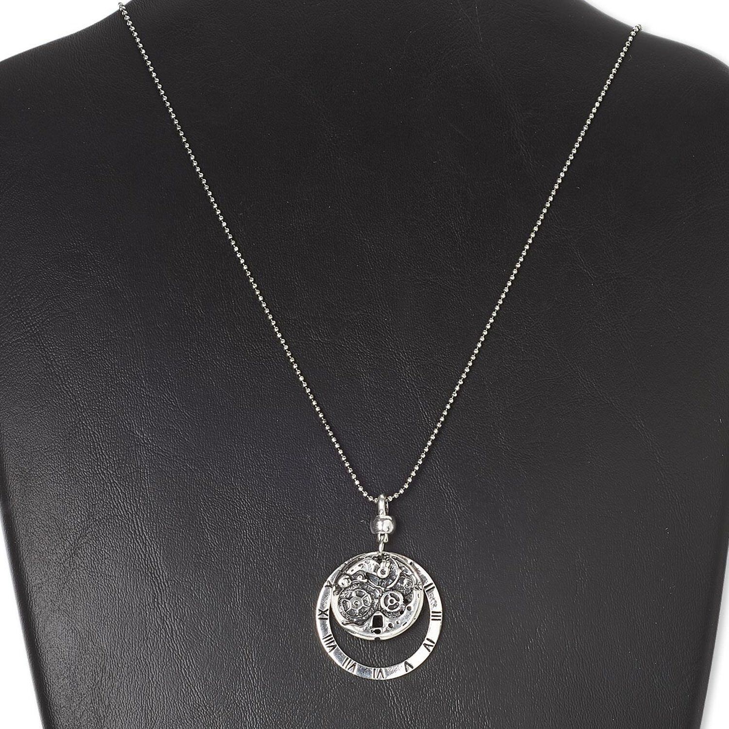 Necklace features a clock pendant with gear. This ready-to-wear necklace is ideal for gift-giving, counter sales or extending current jewelry lines.