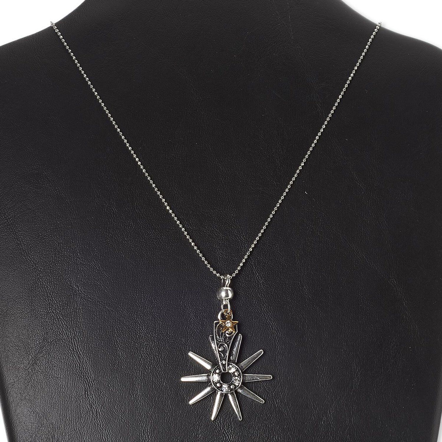 Necklace features an antique gold-finished spur pendant with clear Czech glass crystals and an antique silver-plated "pewter" (zinc-based alloy) star with a clear Czech glass rhinestone. This ready-to-wear necklace is ideal for gift-giving, counter sales or extending current jewelry lines.