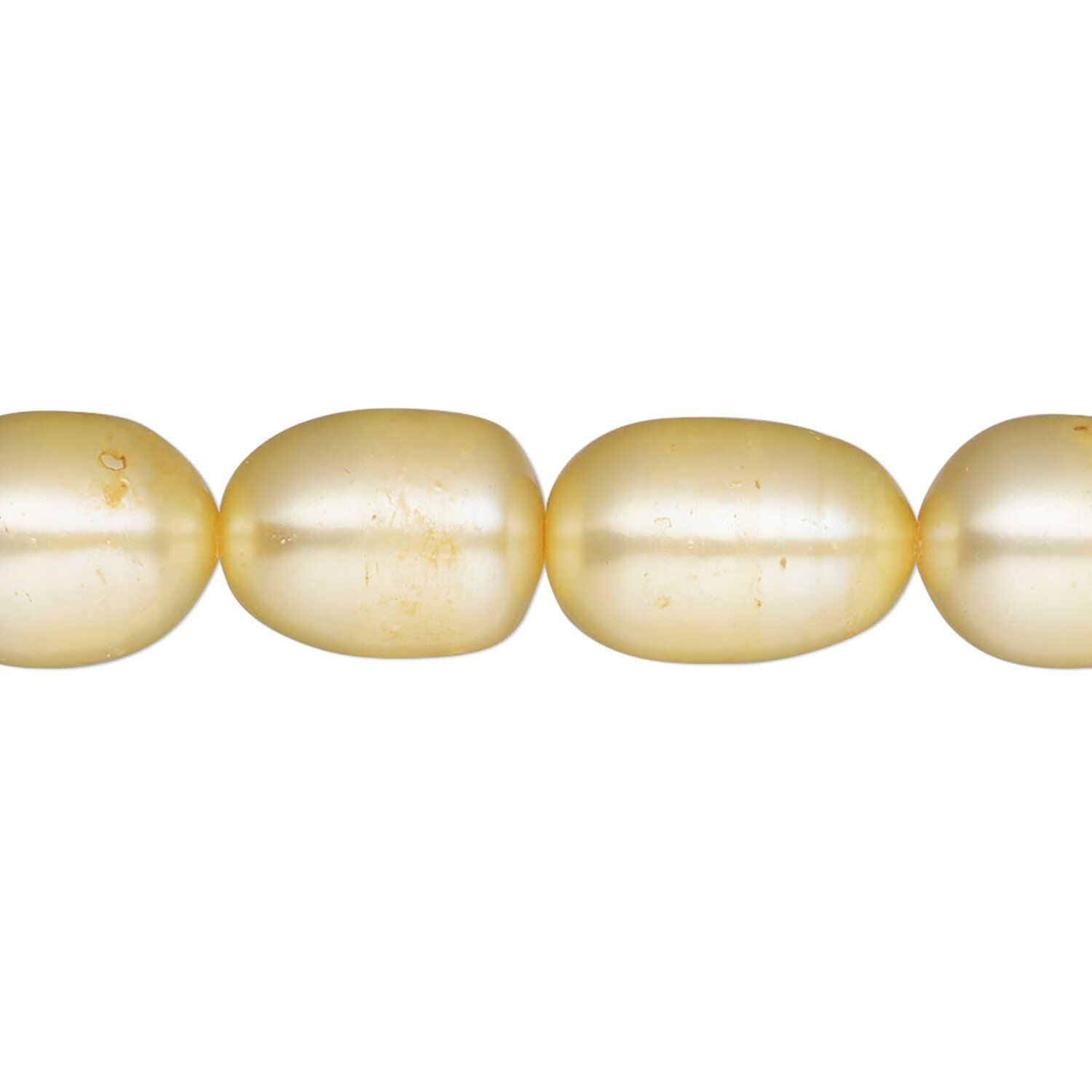 Pearl, cultured freshwater (dyed), jonquil, 9-10mm rice, C grade, Mohs hardness 2-1/2 to 4. Sold per 16-inch strand.