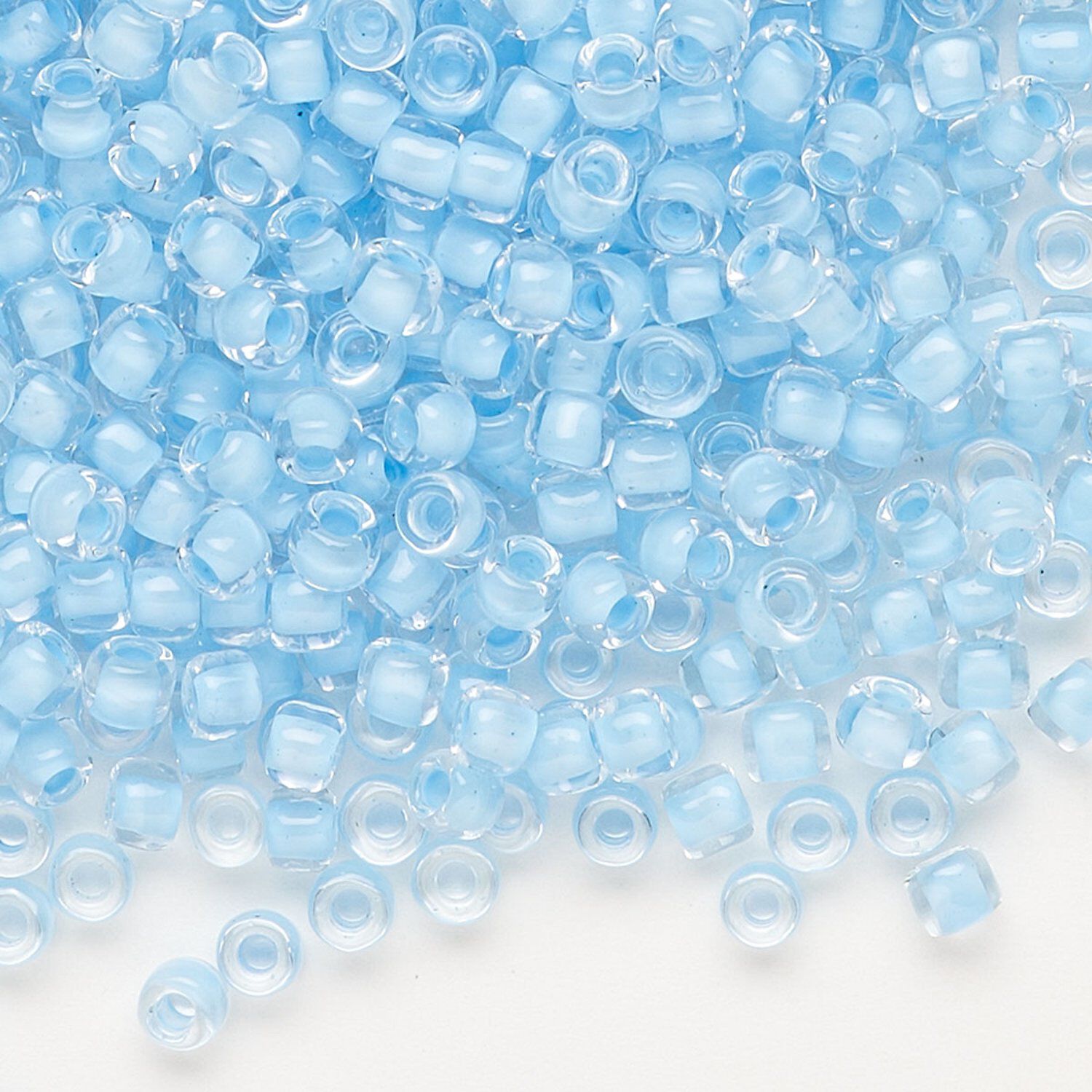 Seed bead, Dyna-Mites™, glass, translucent inside color light aqua, #6 round. Sold per 40-gram pkg.